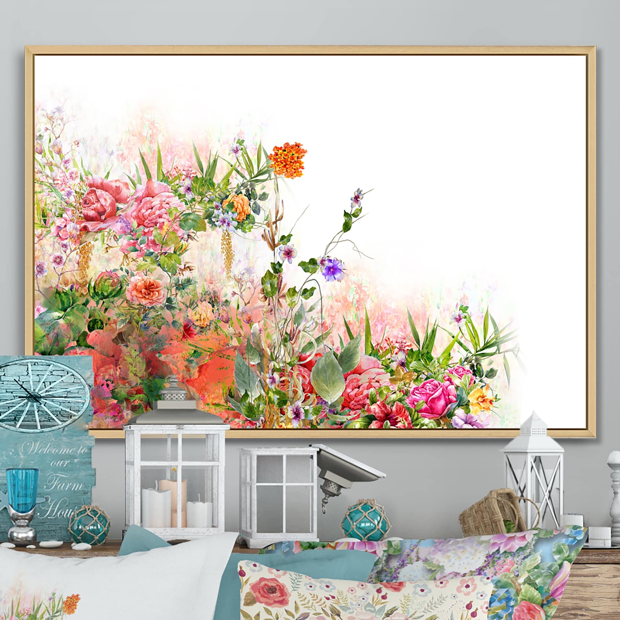 Designart "Grunge Red Green Summer Flowers II" Farmhouse Framed Canvas Art Print