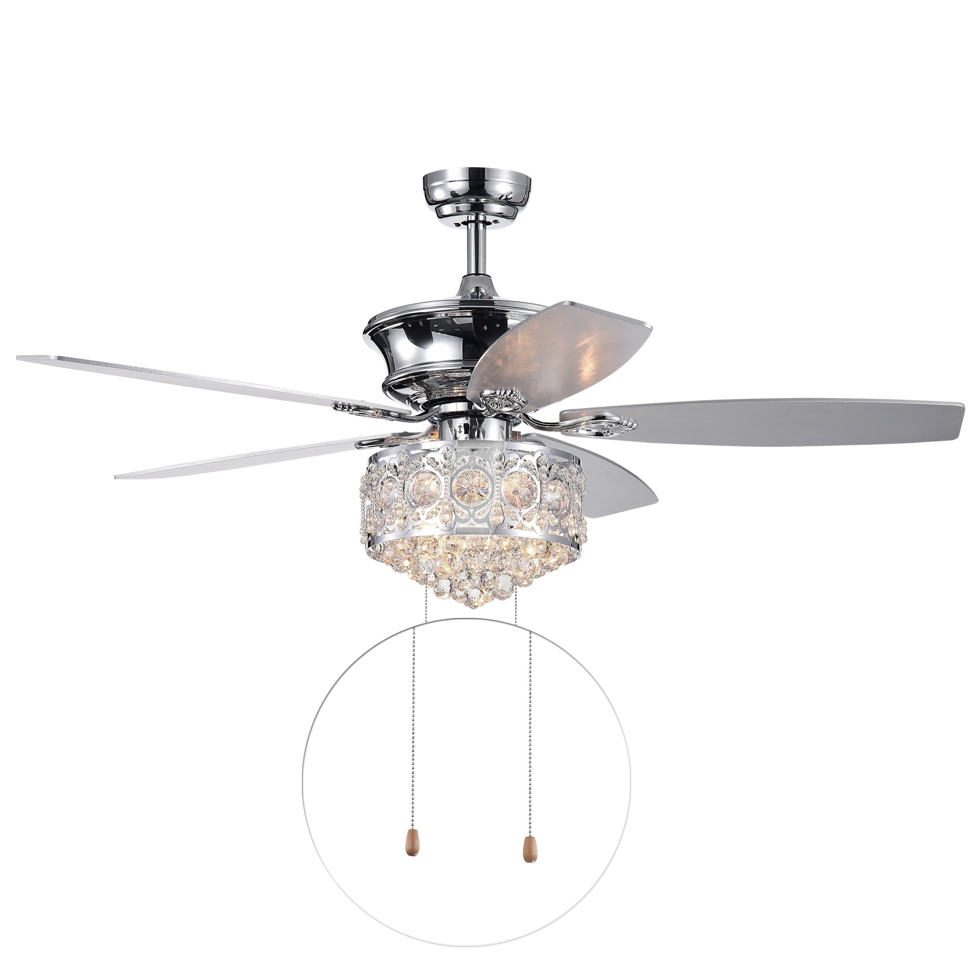 Perris 52-Inch 5-Blade Chrome Lighted Ceiling Fan with 2-Tier Crystal Shade Optional Remote (2 Color Option Blades)