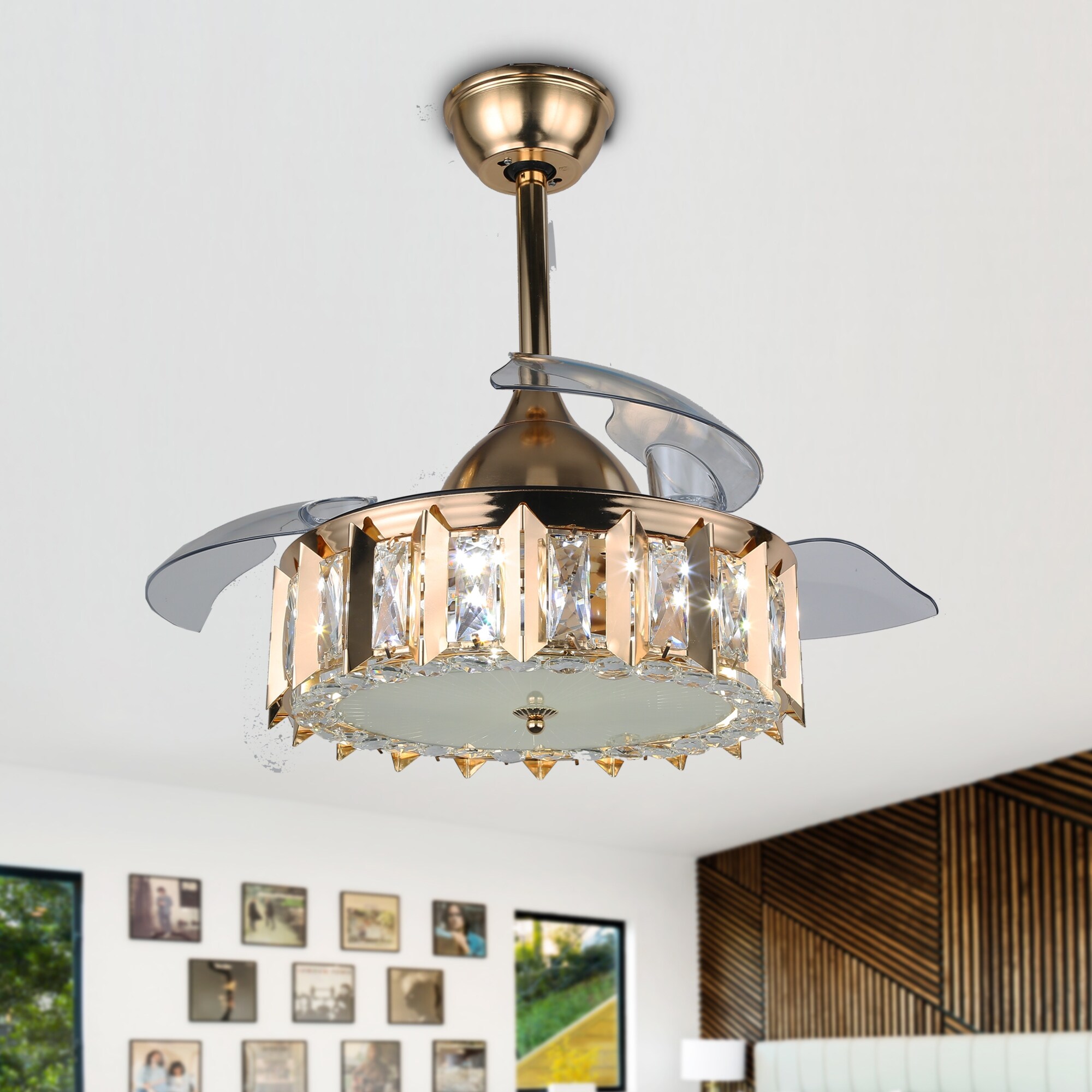 Belladepot Crystal Retractable Ceiling Fan, with Light and Remote Control - 42 inches - 42 inches