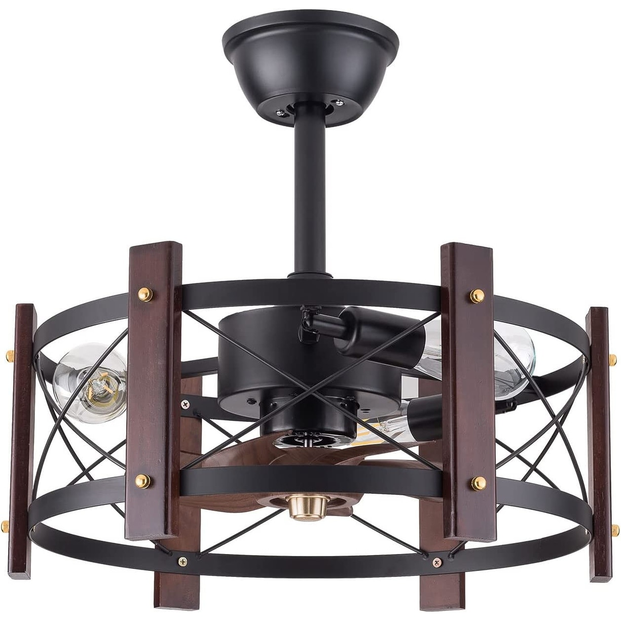 20'' Enclosed Modern Reversible Bladeless Ceiling Fan with Lights, Metal Caged Ceiling Fan with Remote - 20"