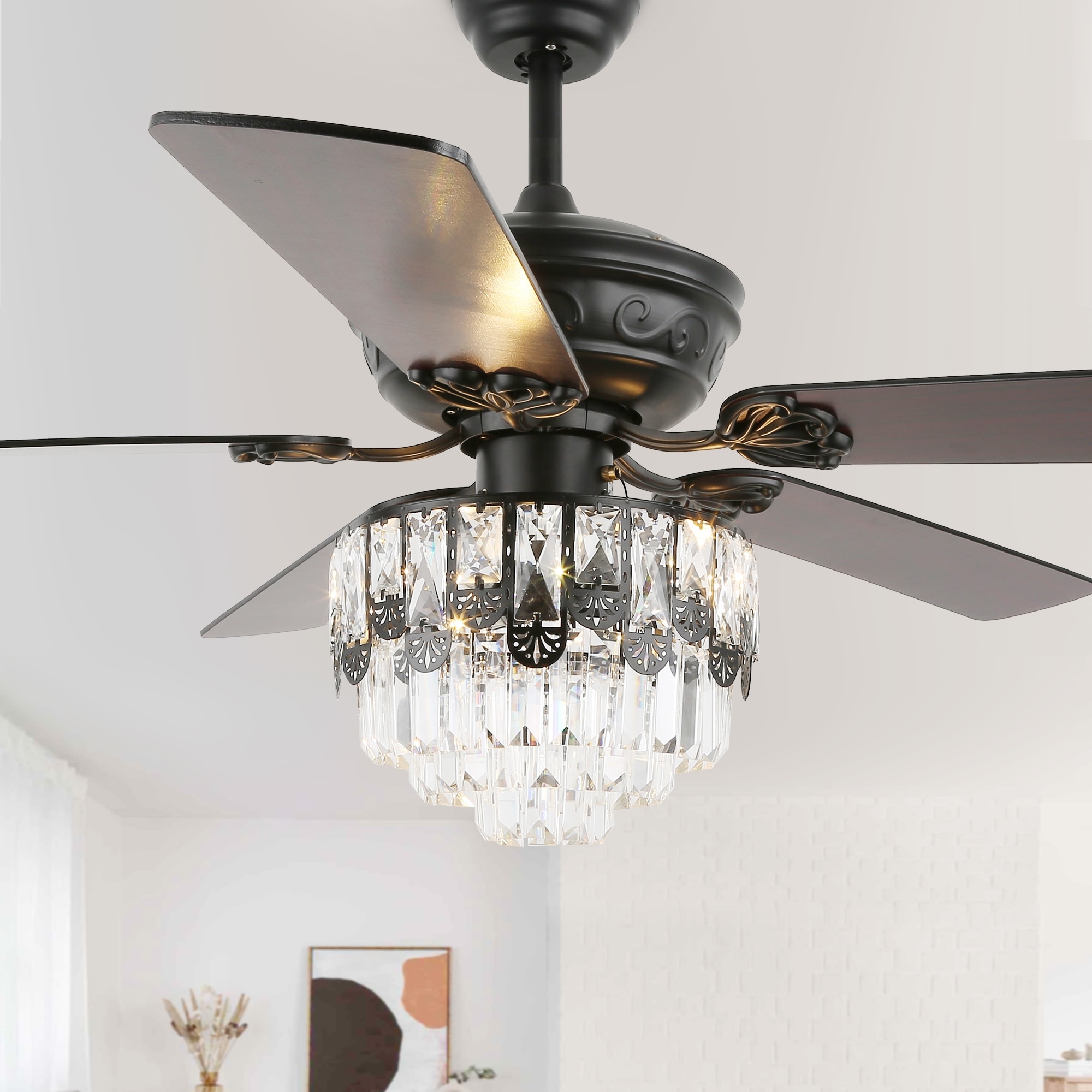 52 in. Indoor Black Downrod Mount Crystal Chandelier Ceiling Fan with Light and Remote Control