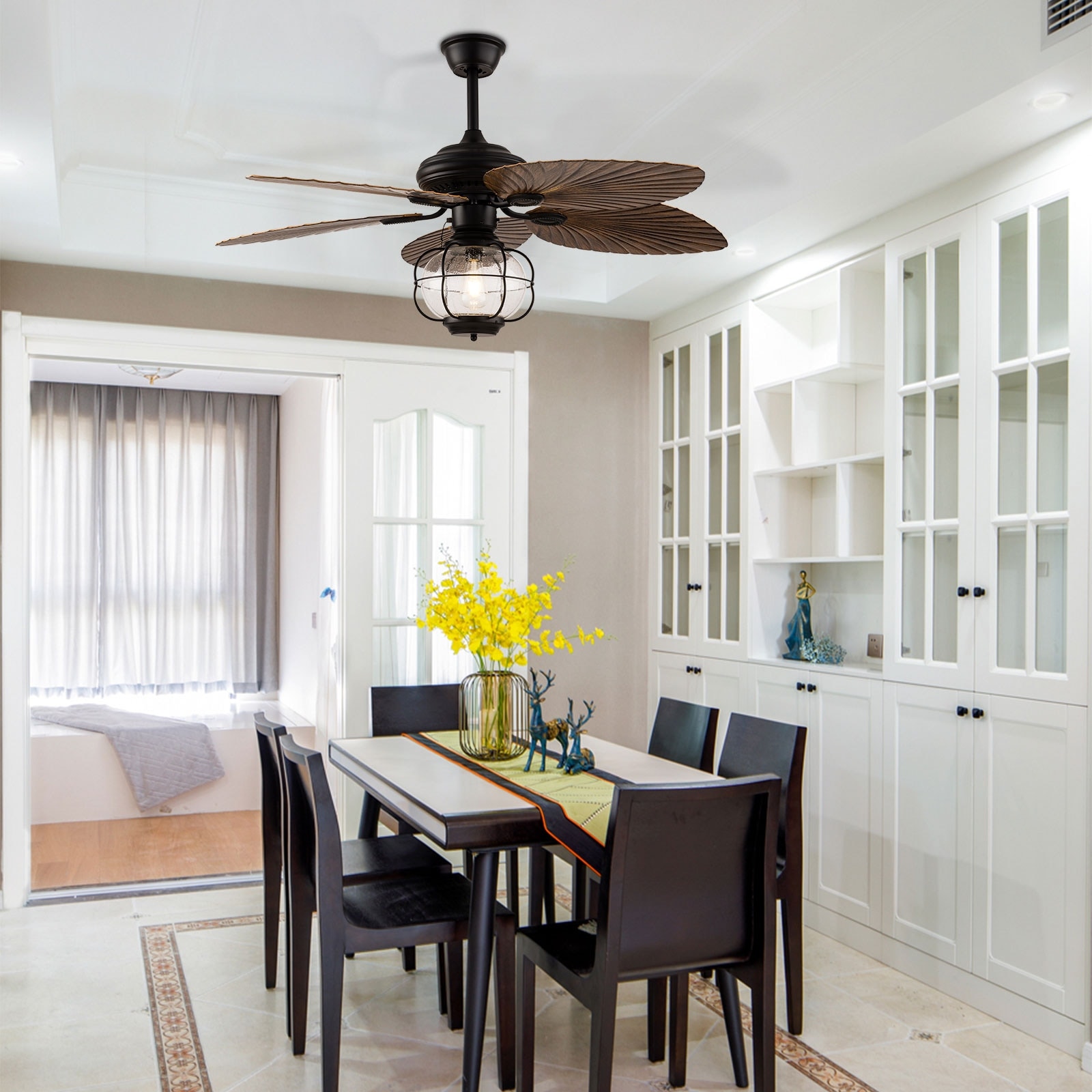 52'' Retro Reversible Blades Ceiling Fan Light with Remote