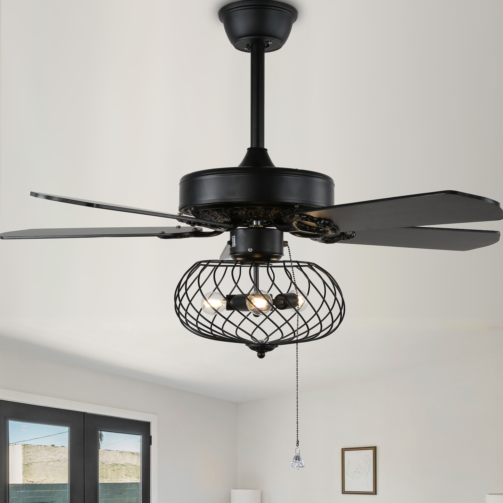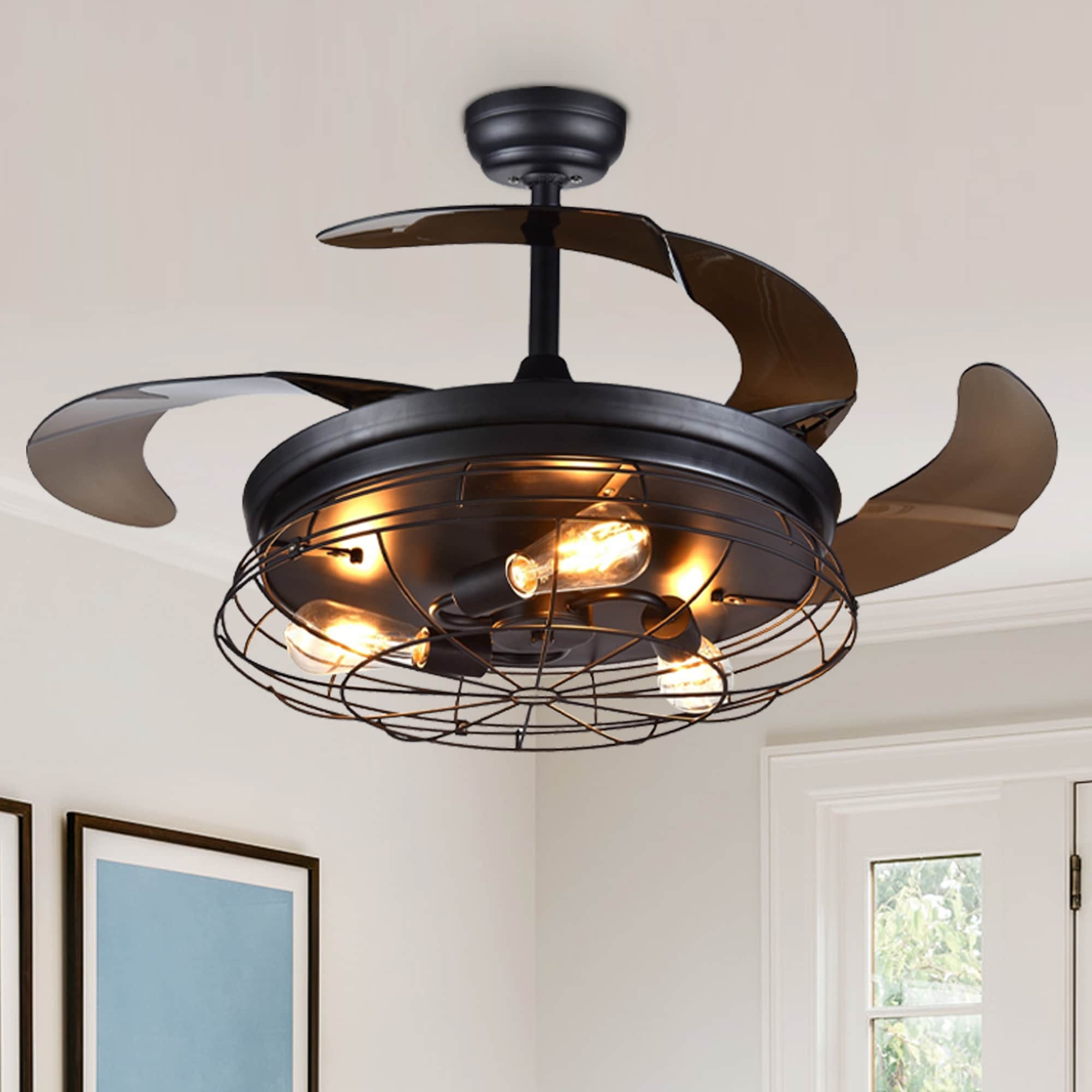 Cusp Barn 36'' Retractable Ceiling Fan with Remote Industrial 3-Blade Caged Chandelier