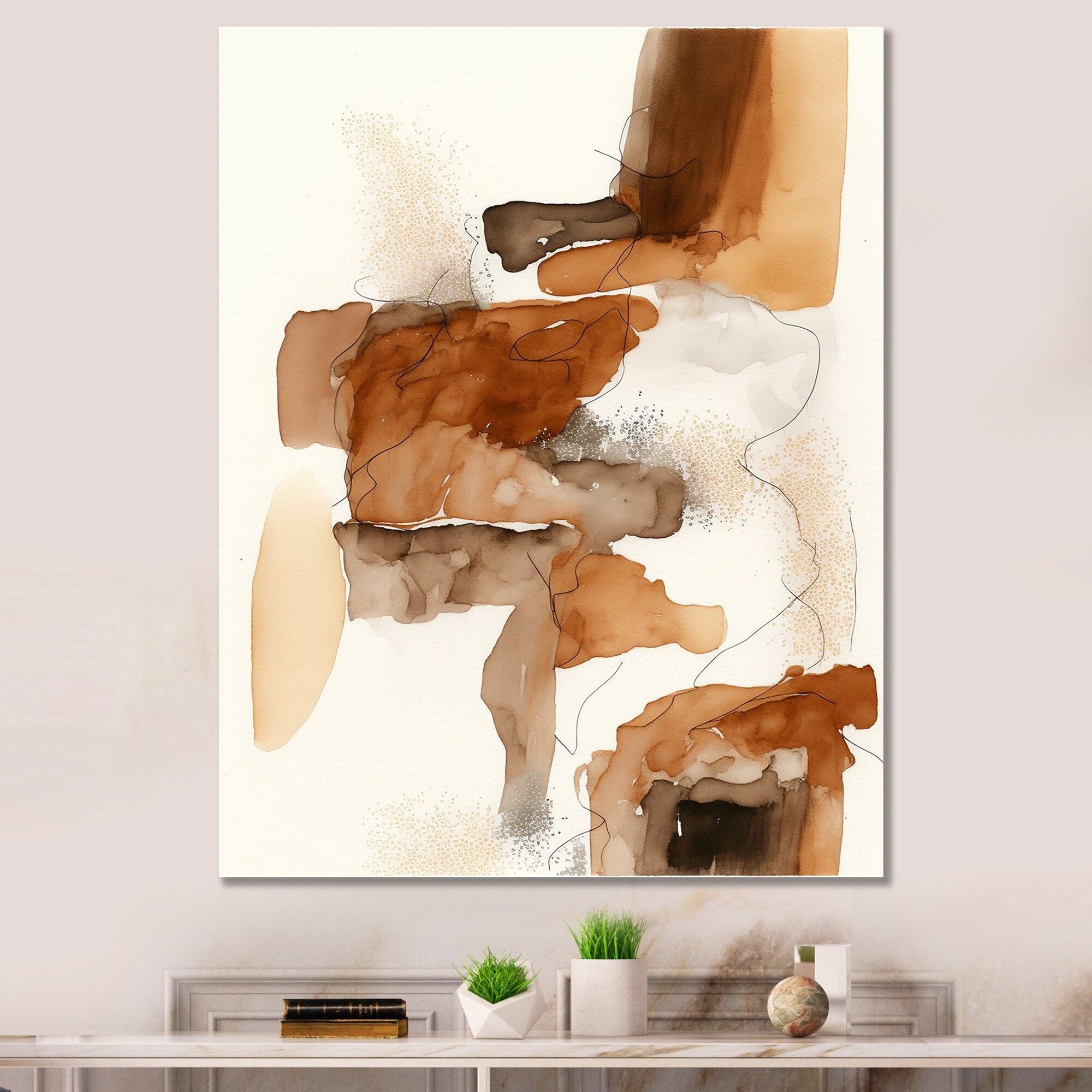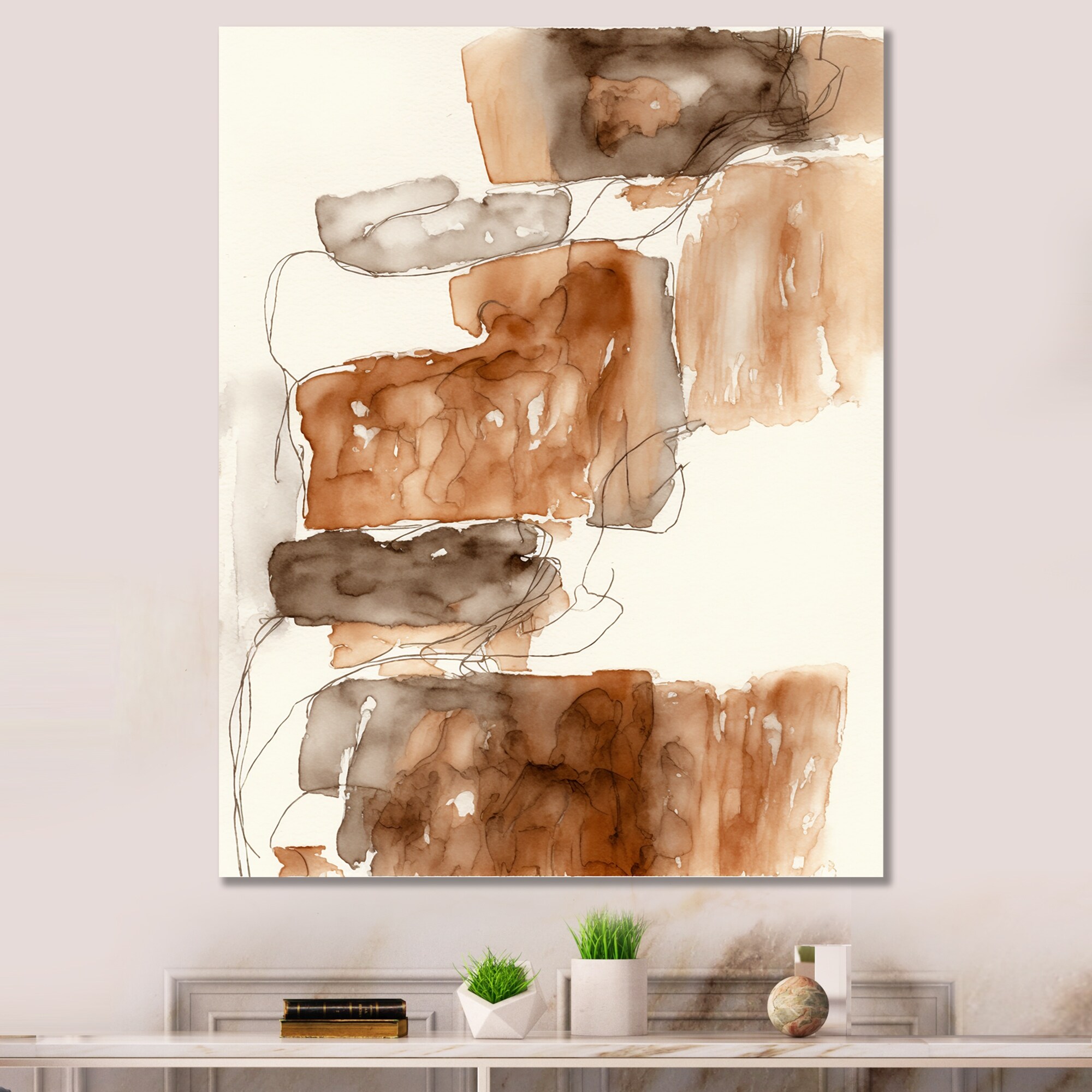 Designart "Canyon Ridge Explorations III" Abstract Liquid Ink Framed Canvas Wall Art Print