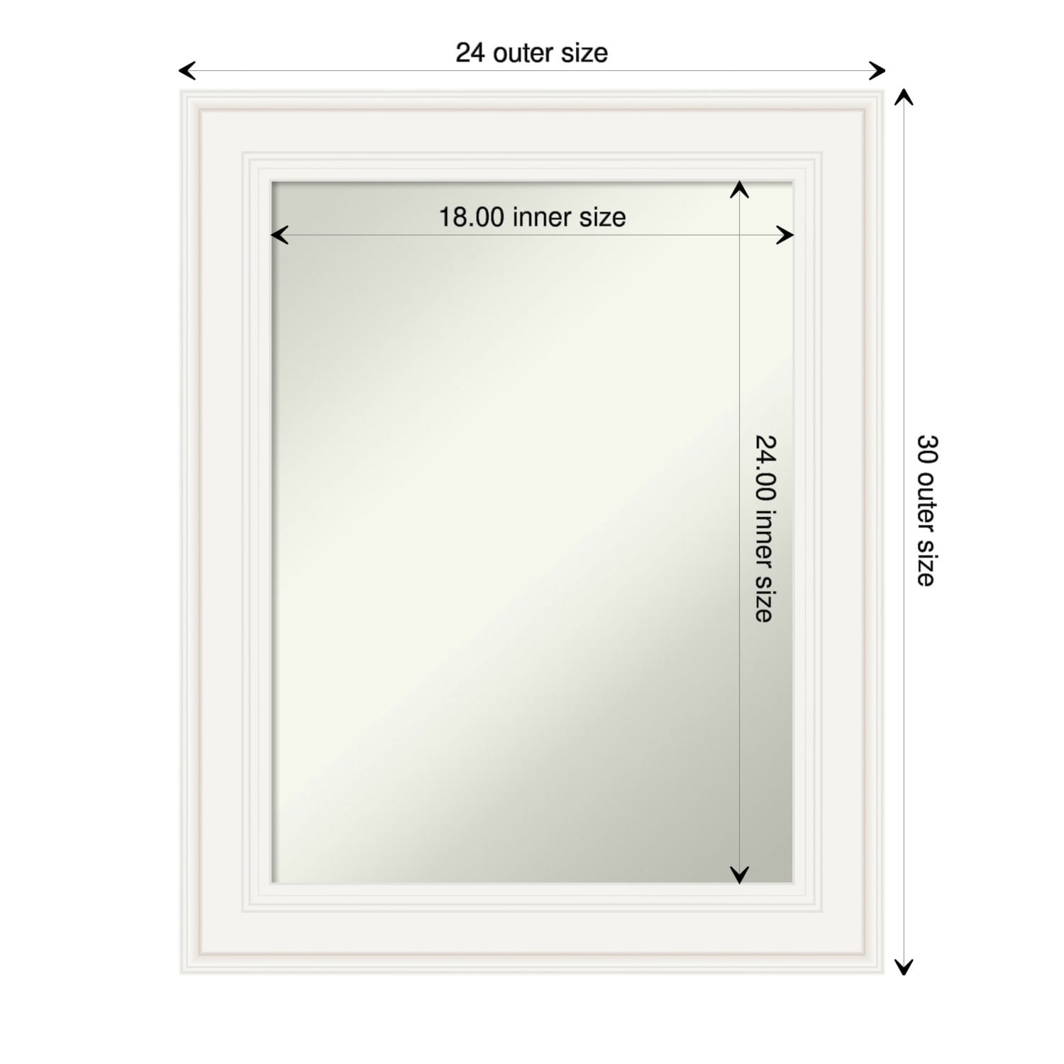 Non-Beveled Bathroom Wall Mirror - Ridge White Frame - Ridge White