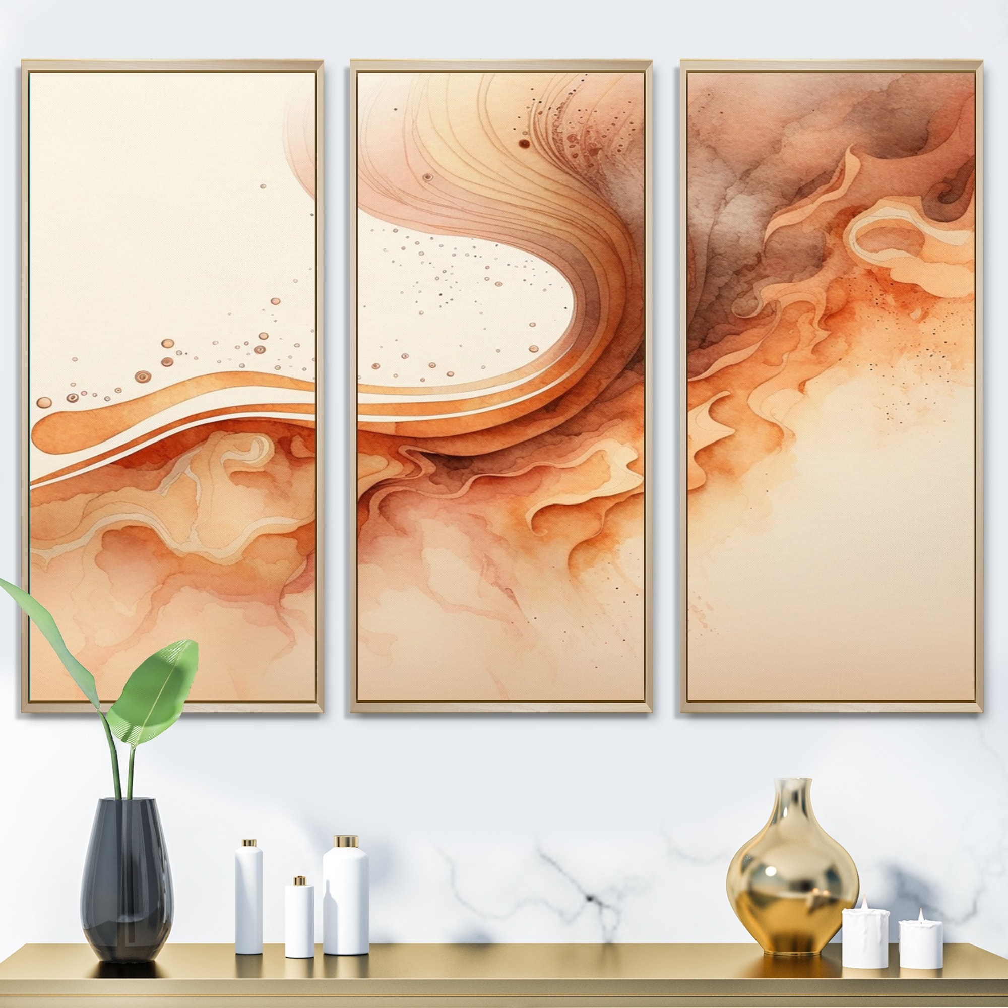 Designart "Wanderings In Canyon Ridge III" Abstract Liquid Ink Framed Canvas Wall Art Print - 3 Panels