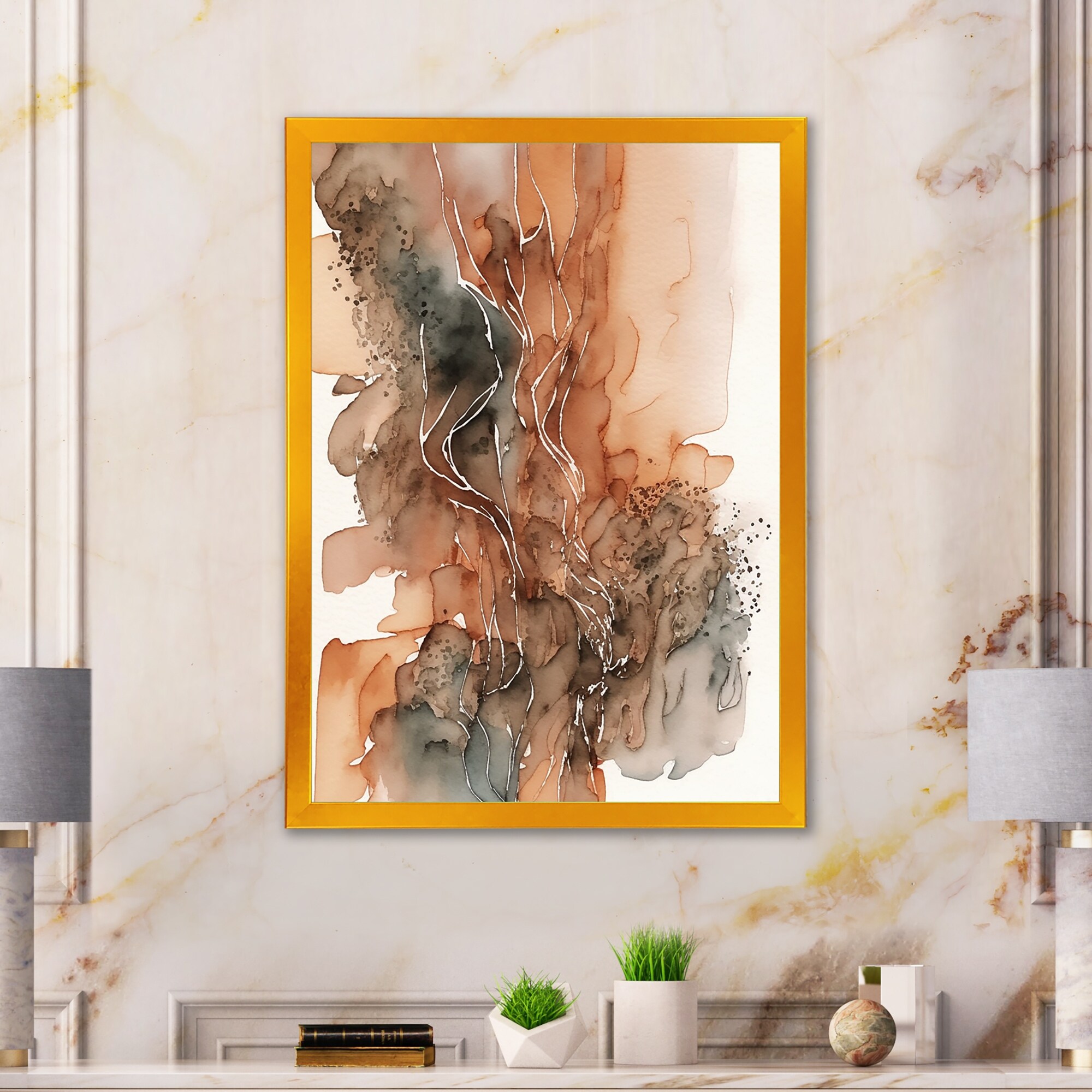 Designart "Wanderings In Canyon Ridge IV" Abstract Liquid Ink Framed Art Print