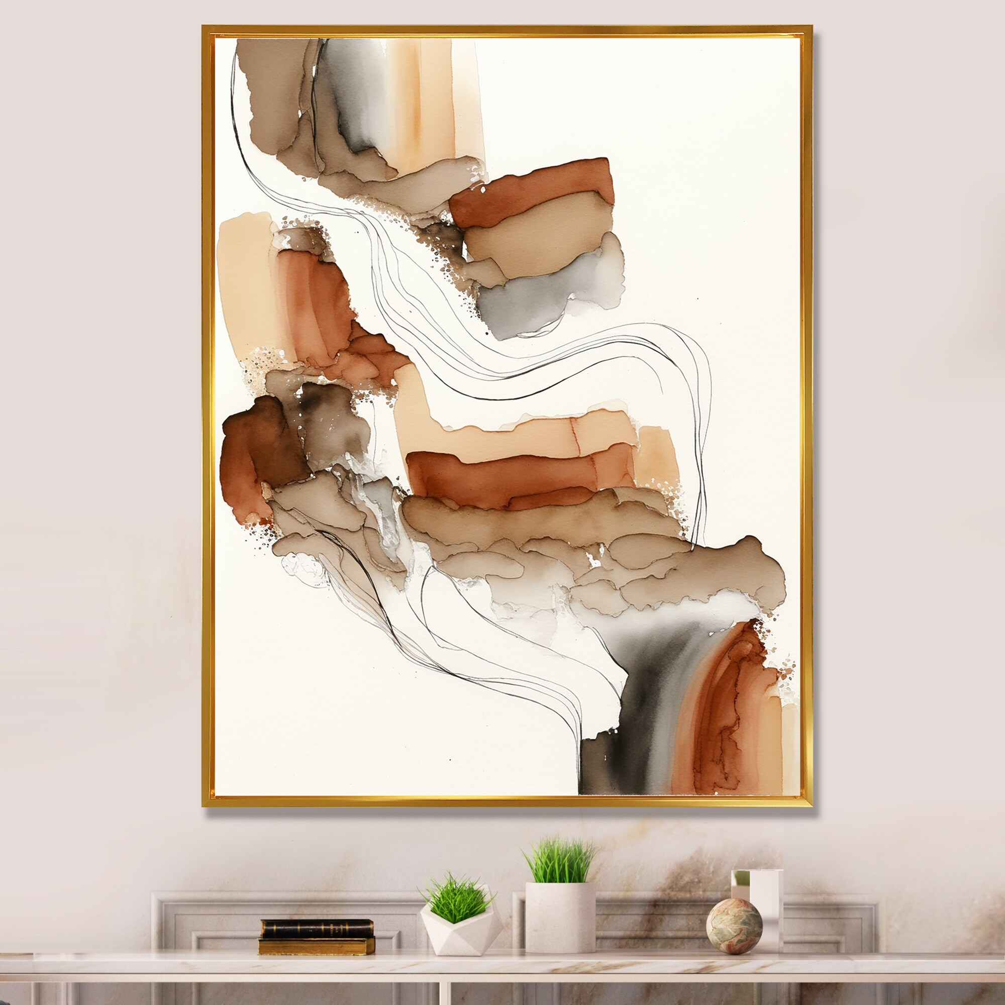 Designart "Wanderings In Canyon Ridge III" Abstract Liquid Ink Framed Art Print