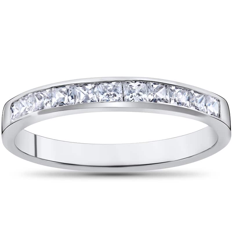 3/4 Ct Diamond Princess Cut Double Channel Wedding Ring 10k White Gold