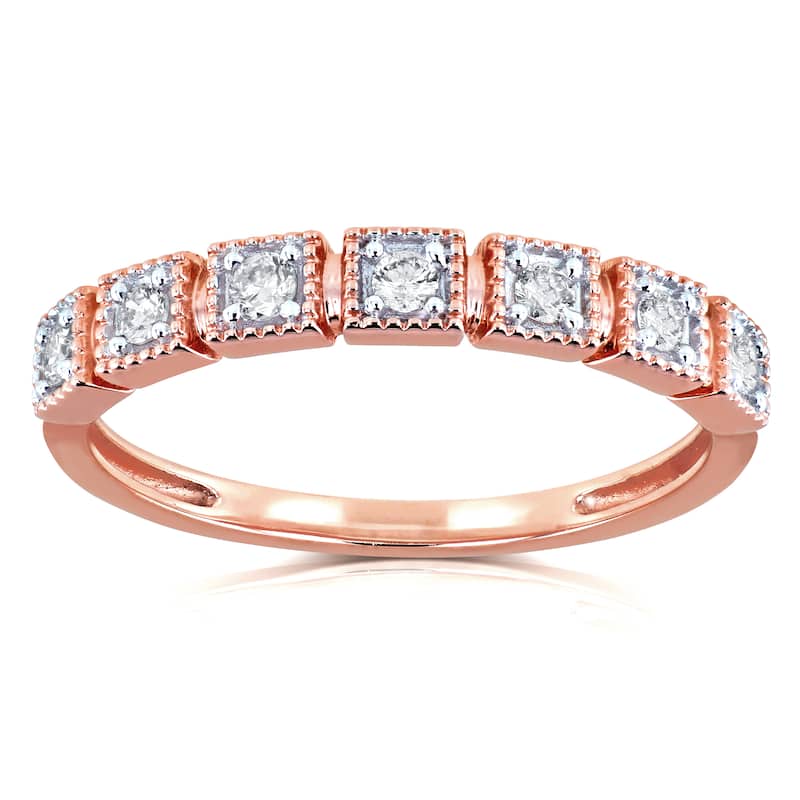 14K Rose Gold 1/5 ct TDW Diamond Ring Womens Stackable Wedding Anniversary Band - White