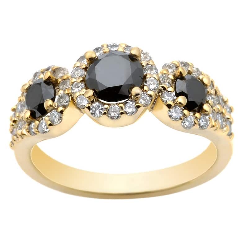 Auriya 14k Gold 1 1/5ctw 3-Stone Black Diamond Ring (G-H, I1-I2)