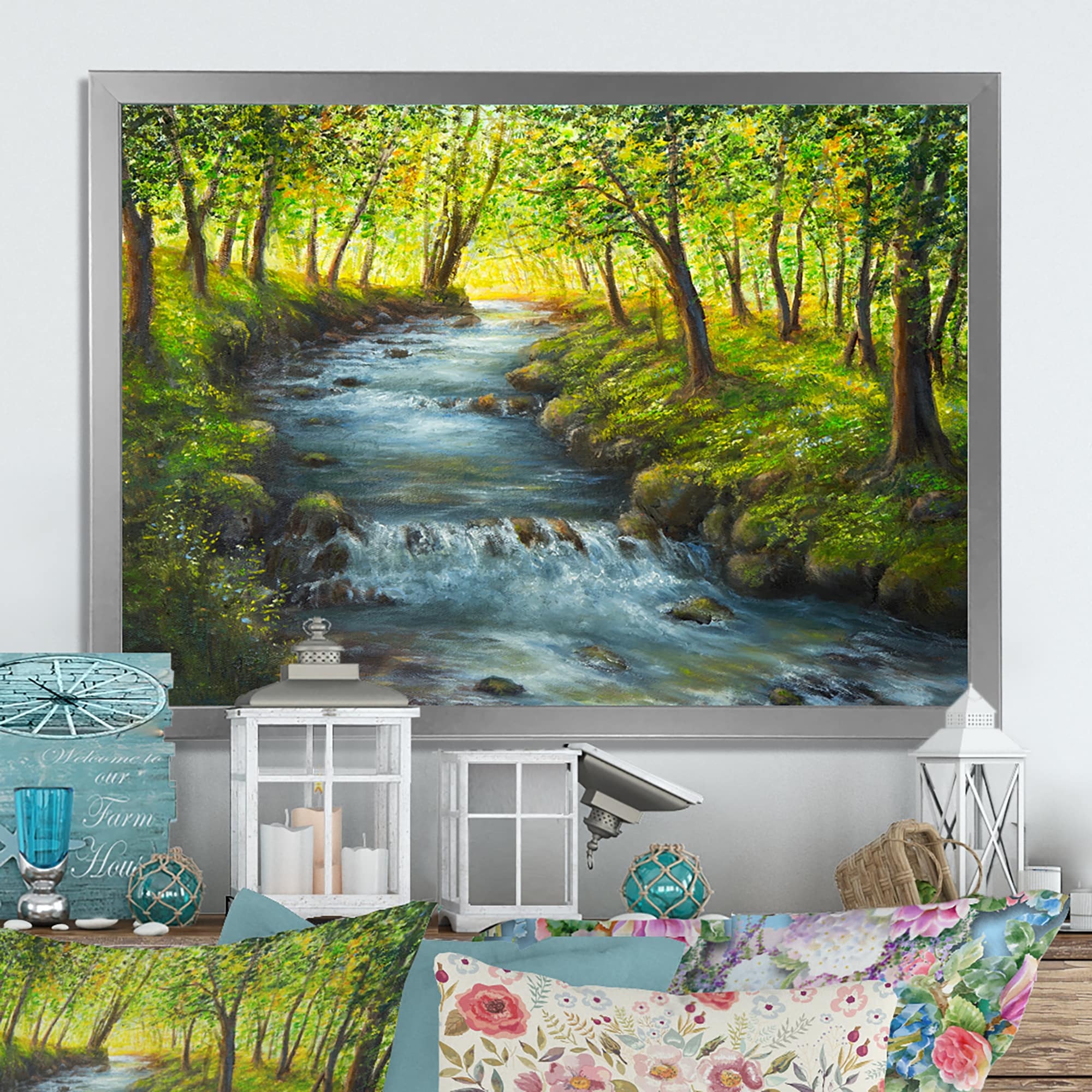 Designart "Beautiful Spring River in Forest II" Traditional Framed Wall Art