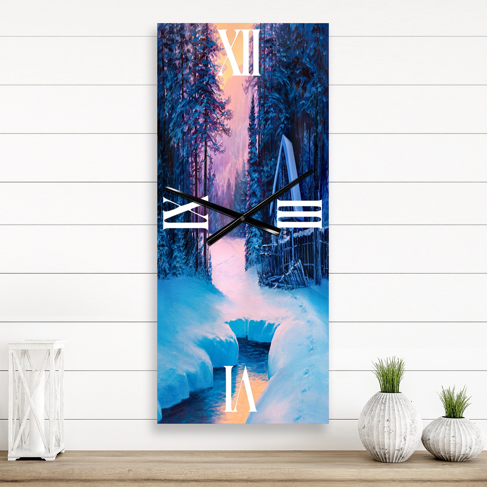 Designart 'Winter Landscape & The River House in the Woods II' Lake House wall clock