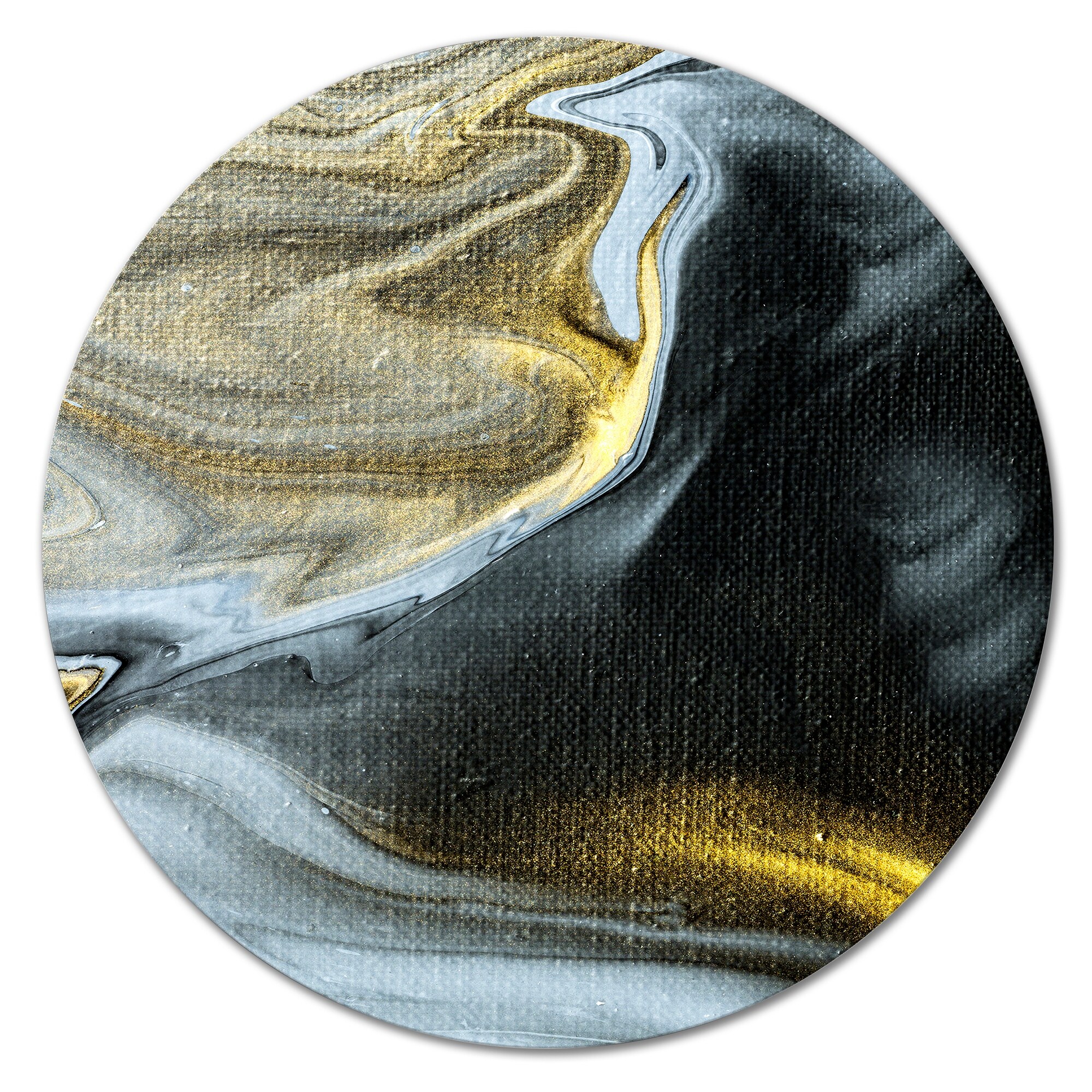 Designart 'Yellow Marble River in Liquid Art Universe V' Modern Metal Circle Wall Art