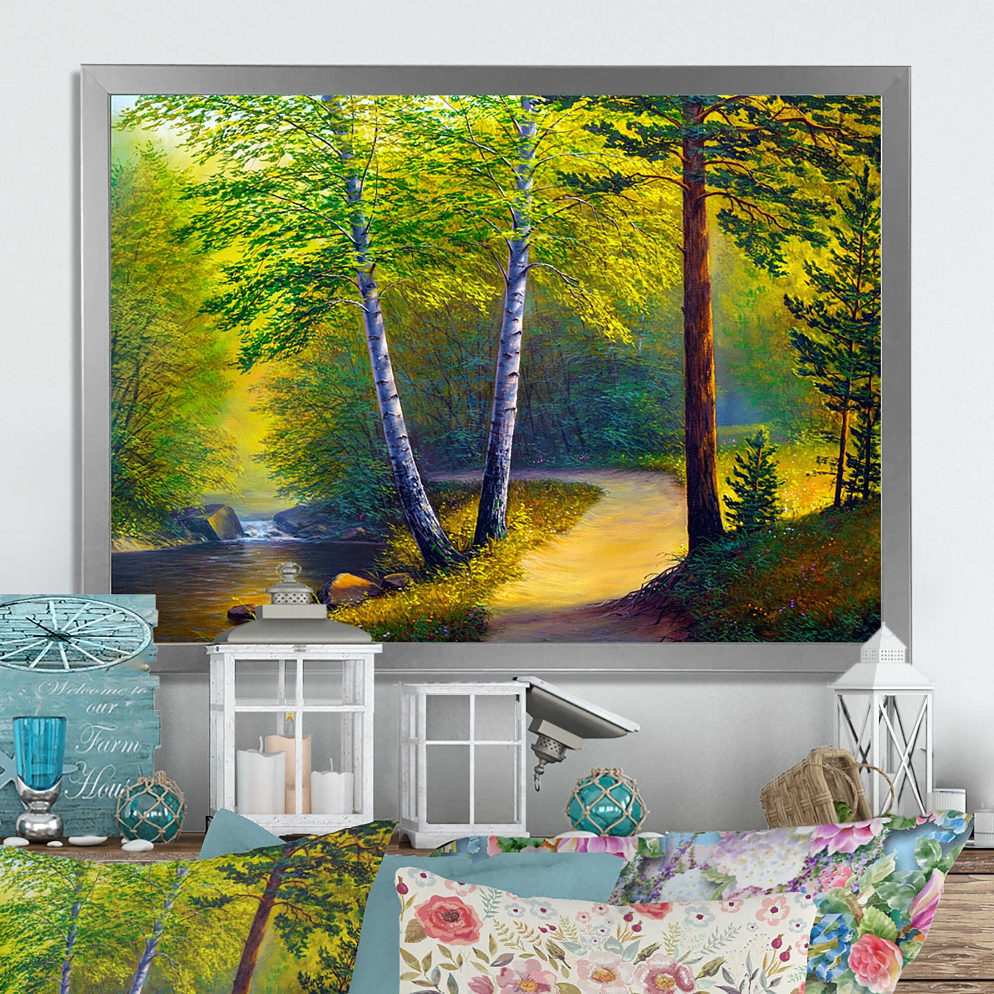 Designart "Forest Scenery on Summer River III" Traditional Framed artwork