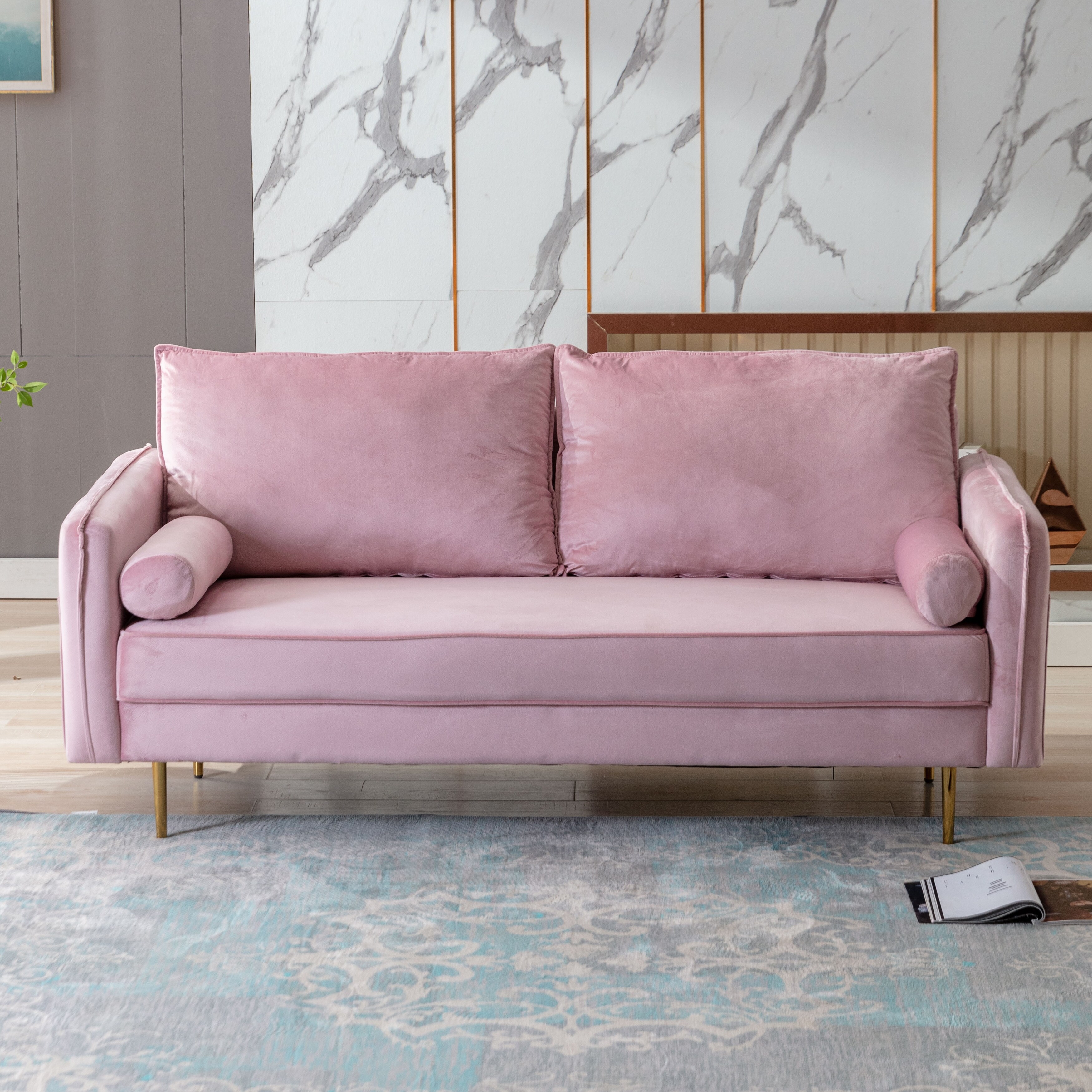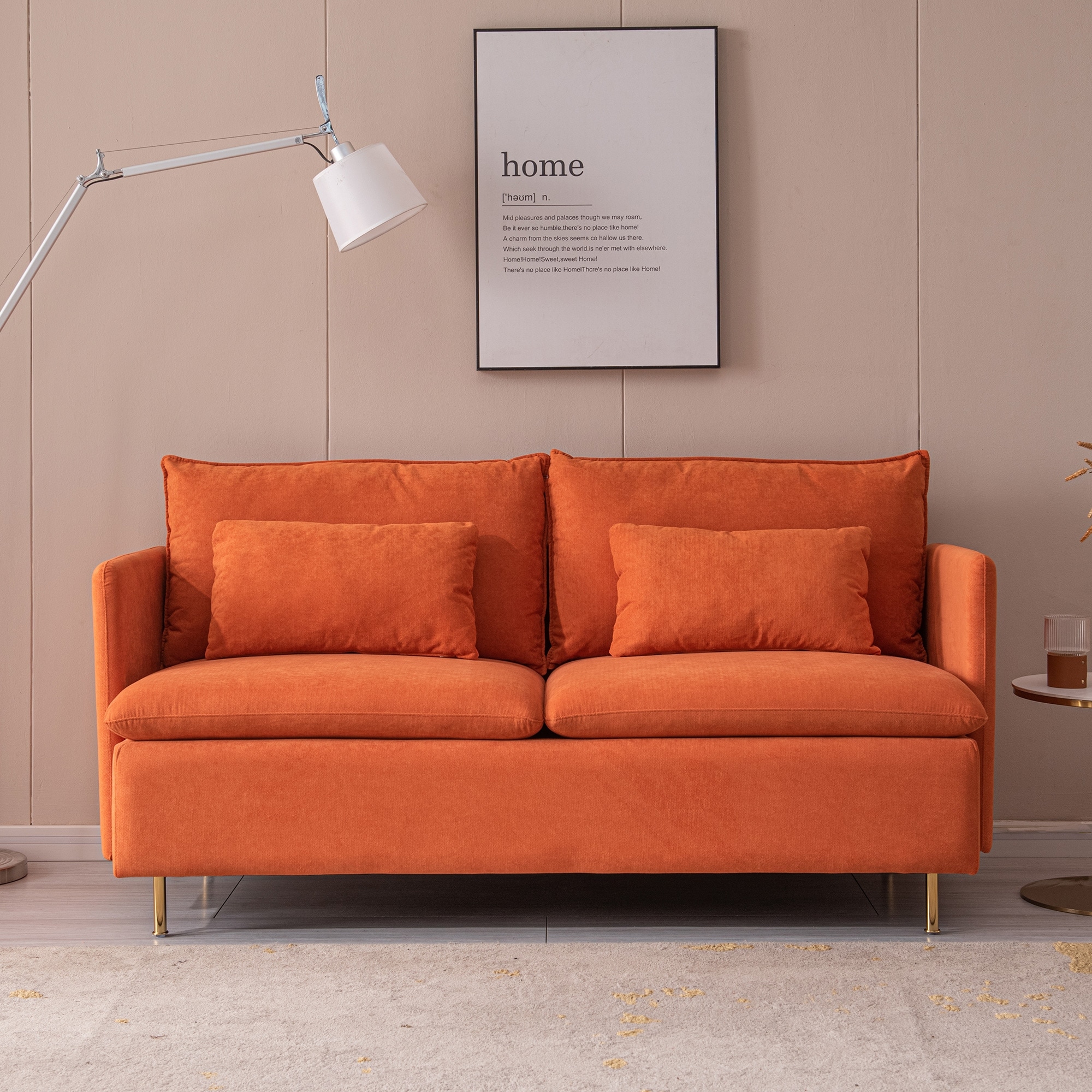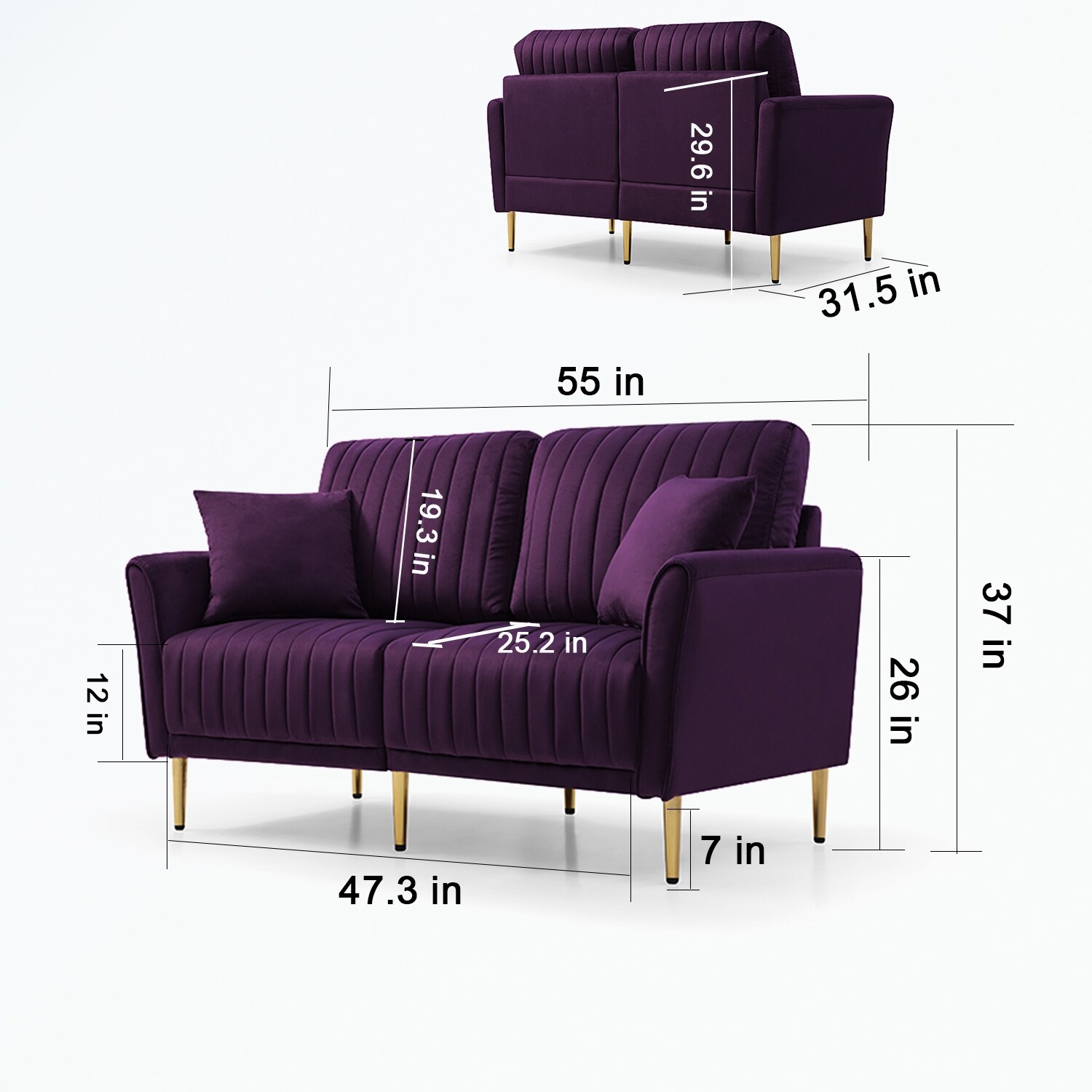 Available in Various colors, 55.5" Velvet 2-Seater Sofa Bed, Loveseat with 2 Pillows and Gold Metal legs for Living room