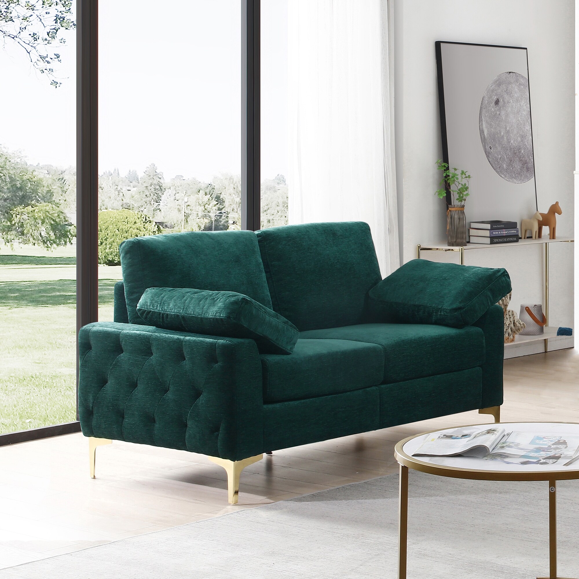 Diamond Tufted 2 Seater Couch Chenille Fabric Upholstered Loveseat Sofas with Sturdy Metal Legs and 2 Arm Pillows