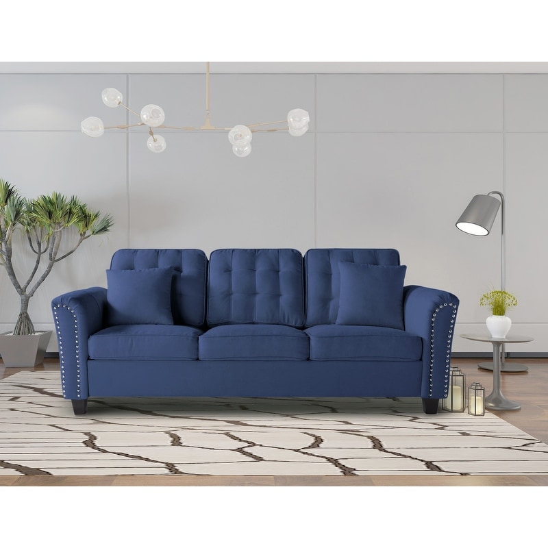 Mid-Century Sofa Modern Upholstered 3-Seat Sofa Couch with Arm and 2 Pillows for Living Room