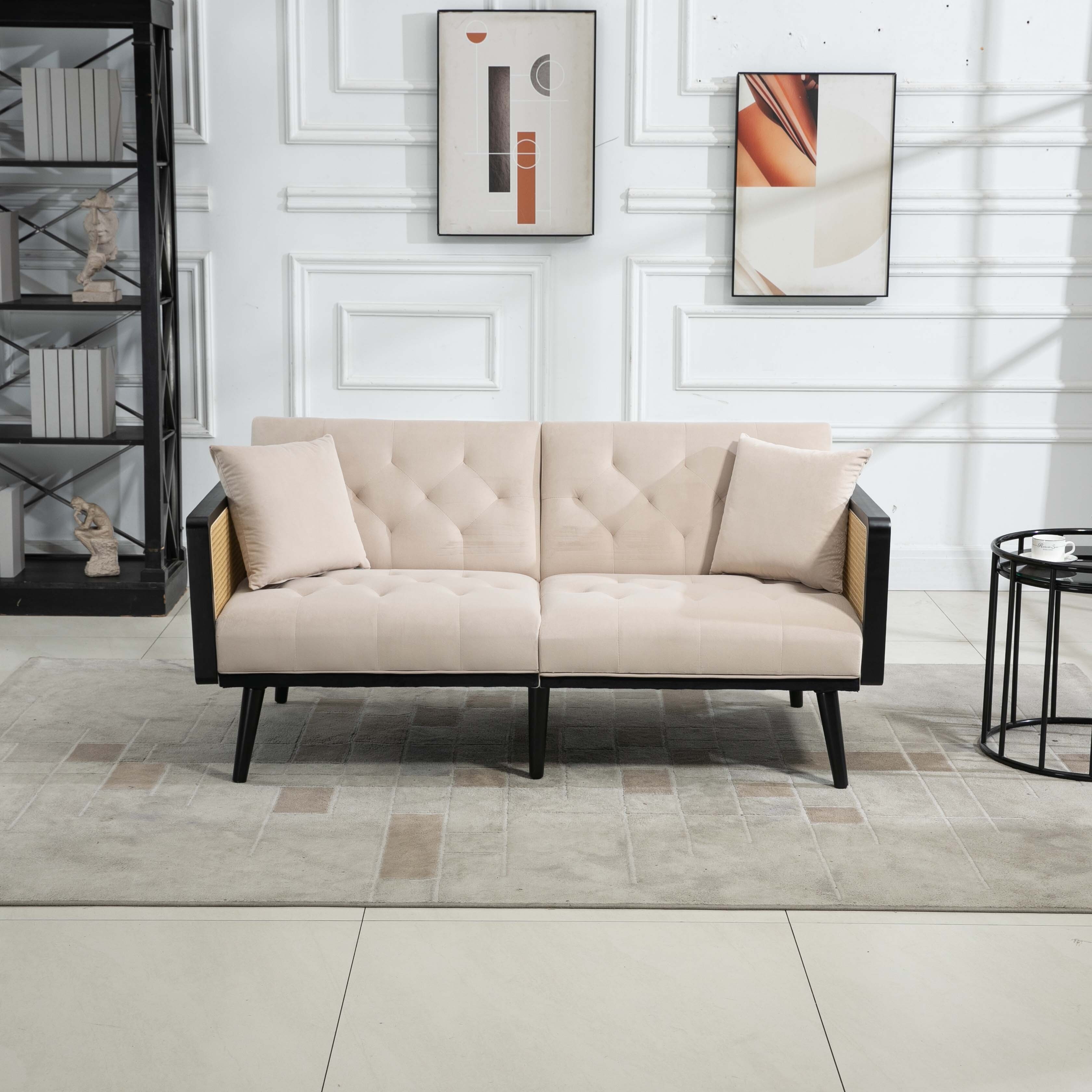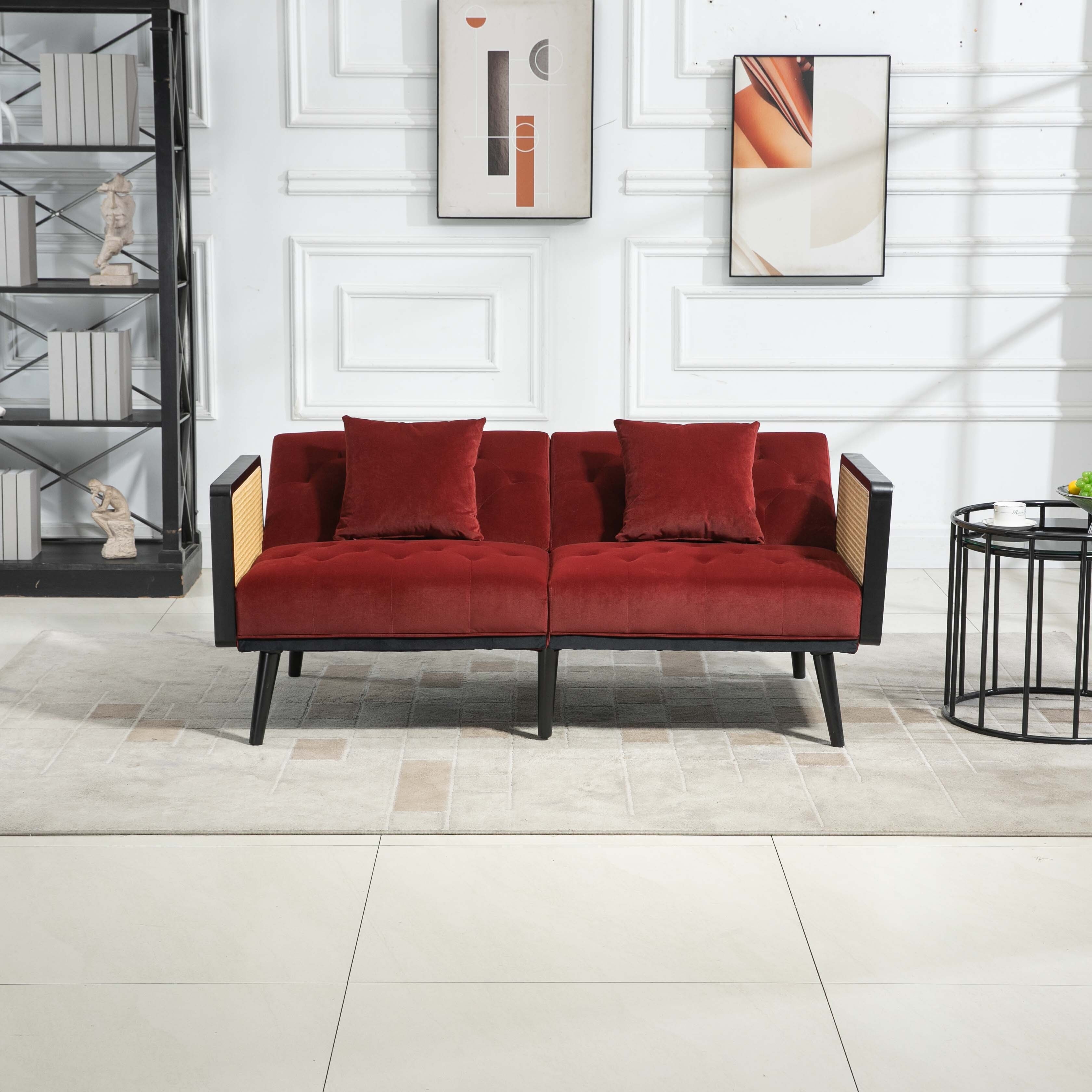 Velvet Upholstered Loveseat Adjust Back Sleeper Sofa Mid-Century Modern Sofa Couch with 2 Pillows for Home Living Room