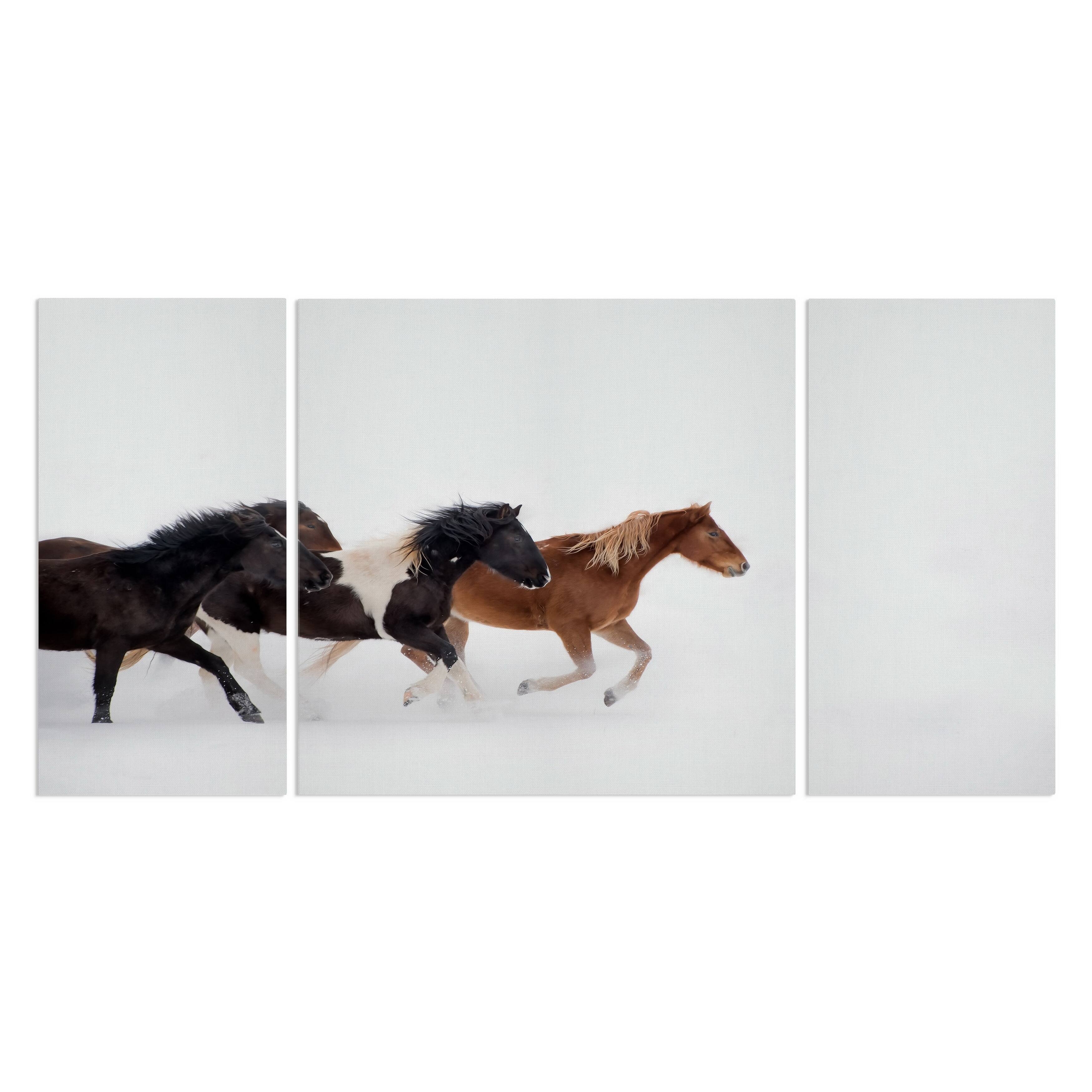 Designart "White horse run gallop in winter" Animal Framed Art Prints Set of 3 - 4 Colors of Frames