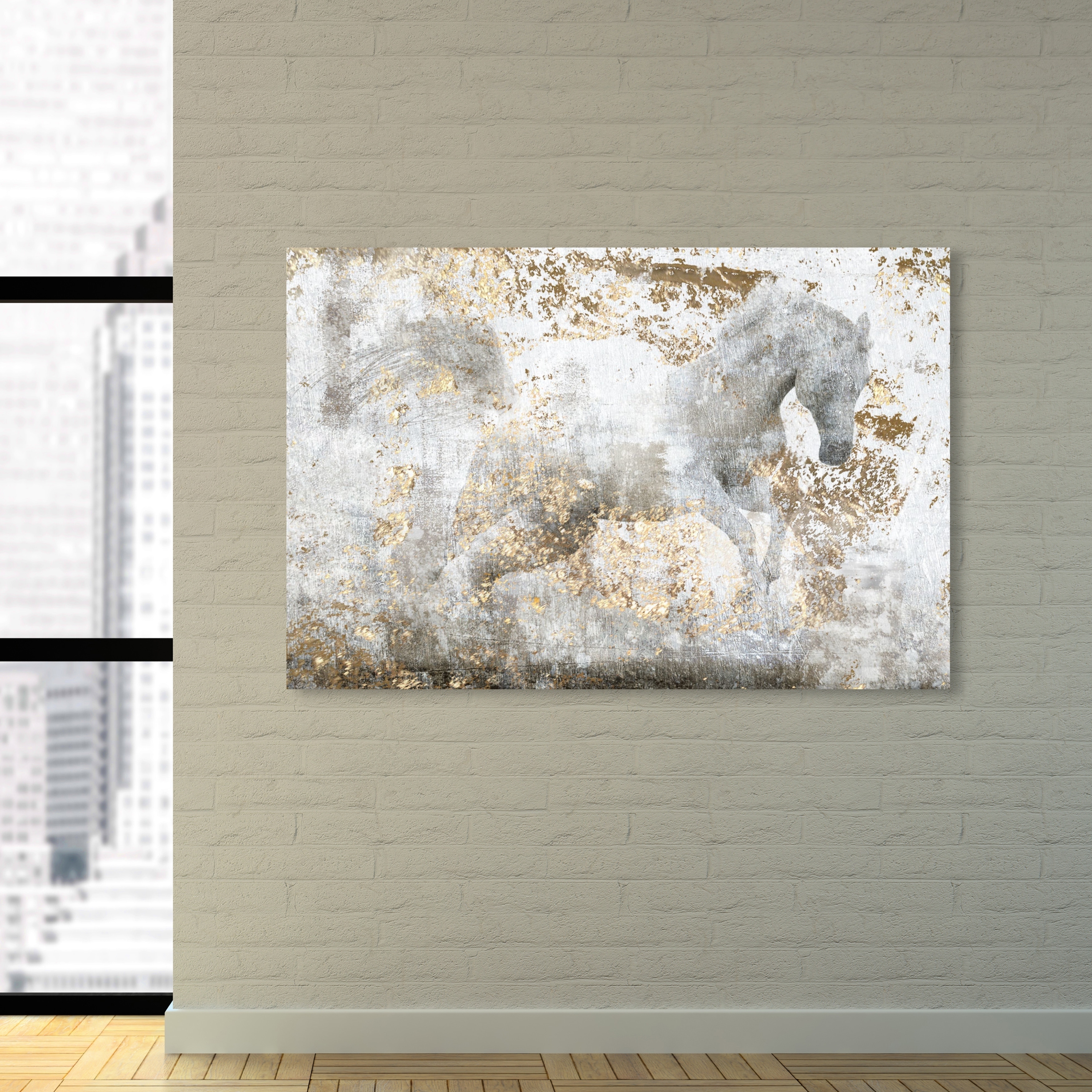 Oliver Gal 'Running Equus' Animals Wall Art Canvas Print - White, Gold