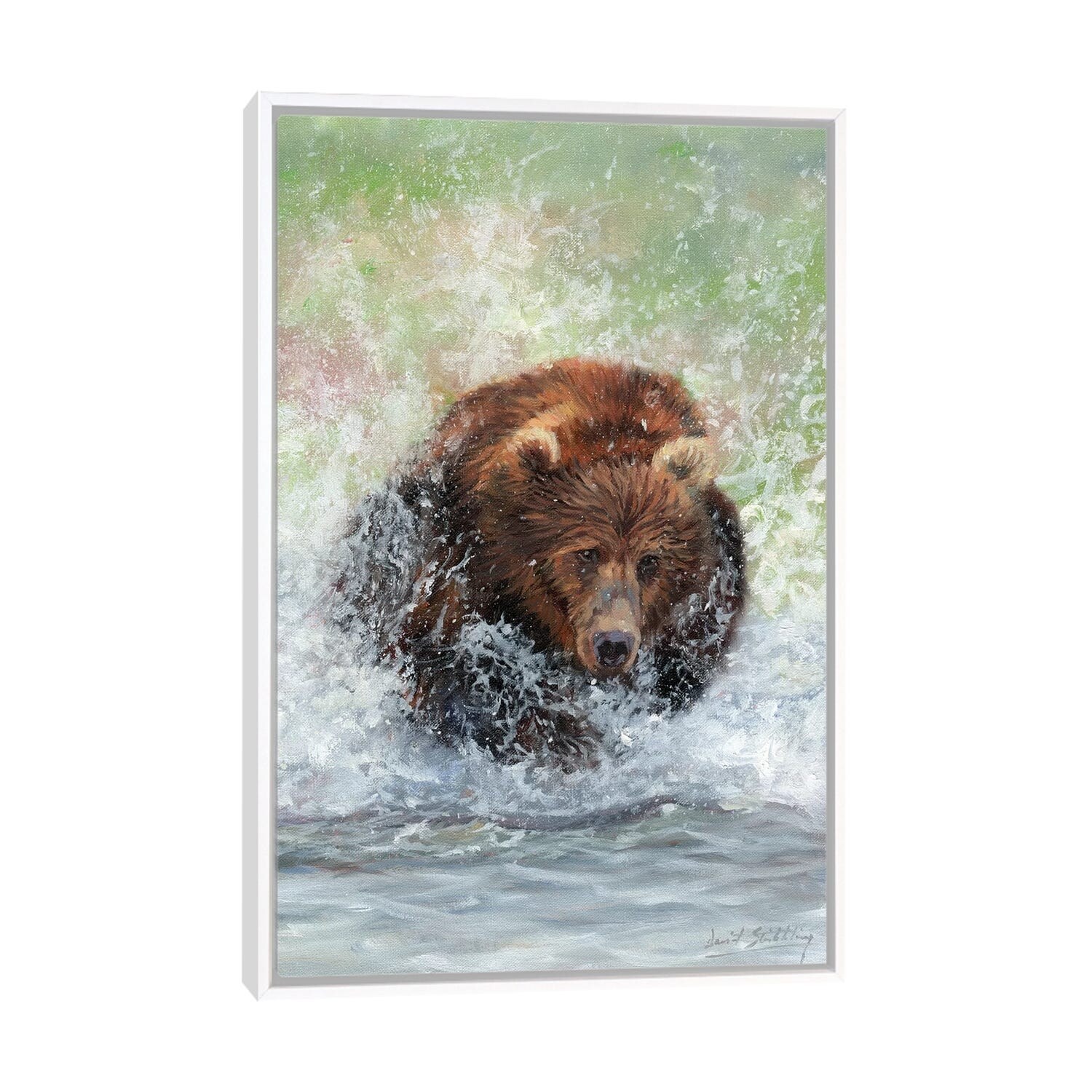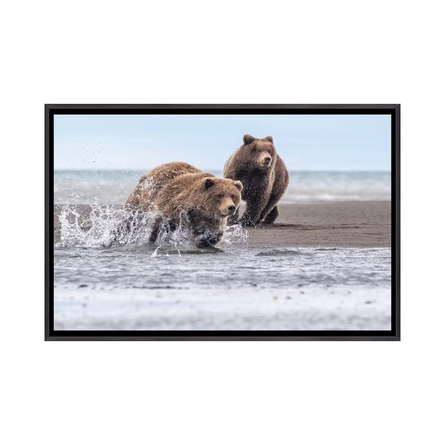 iCanvas "Bear Running Through Water" by David Stribbling Framed Canvas Print