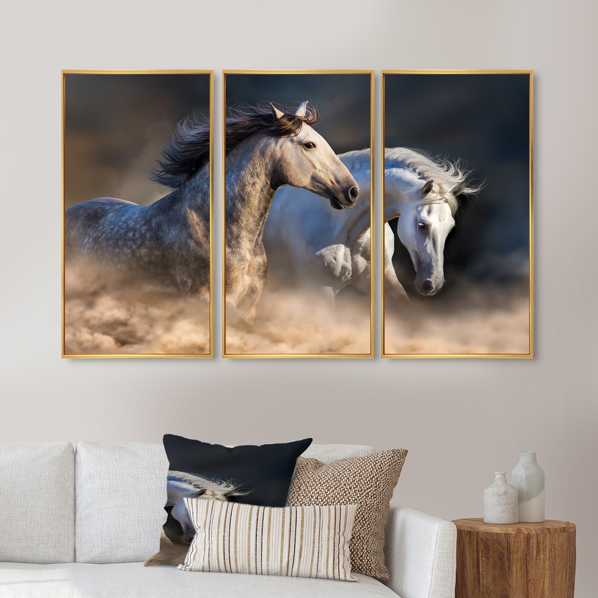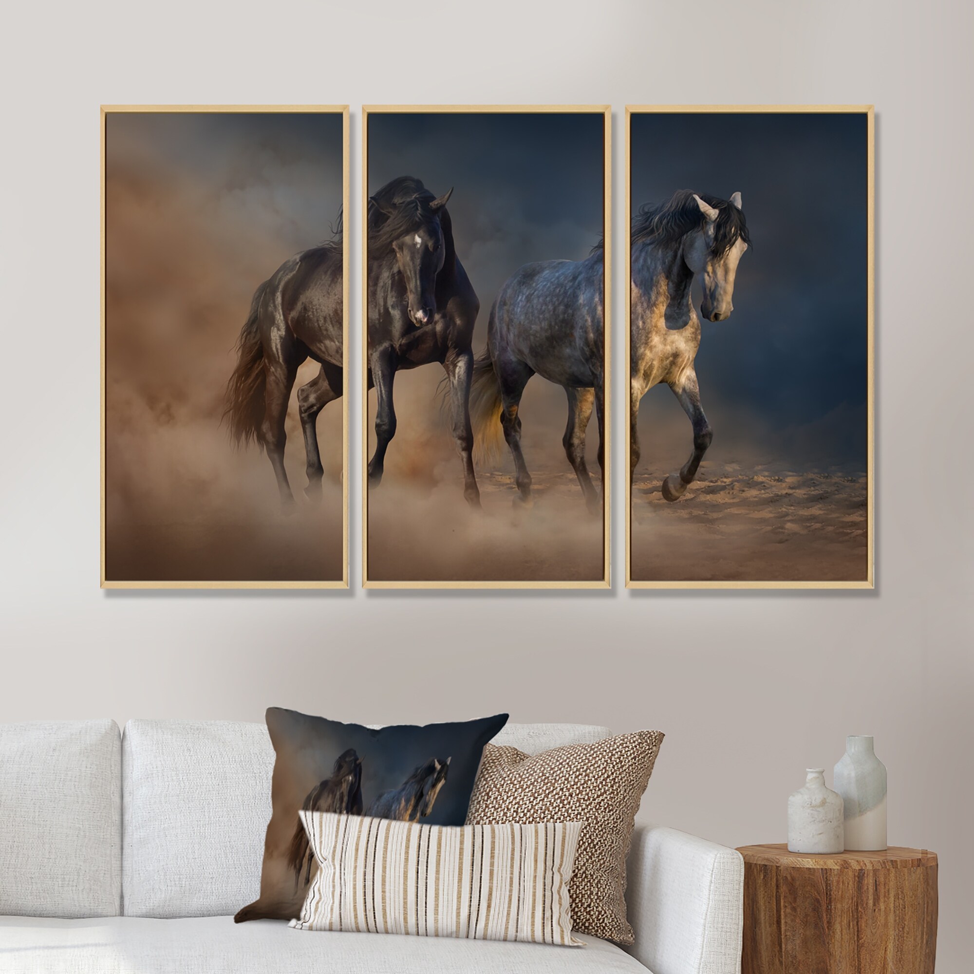 Designart "Horses run in dust" Animal Framed Artwork Set of 3 - 4 Colors of Frames