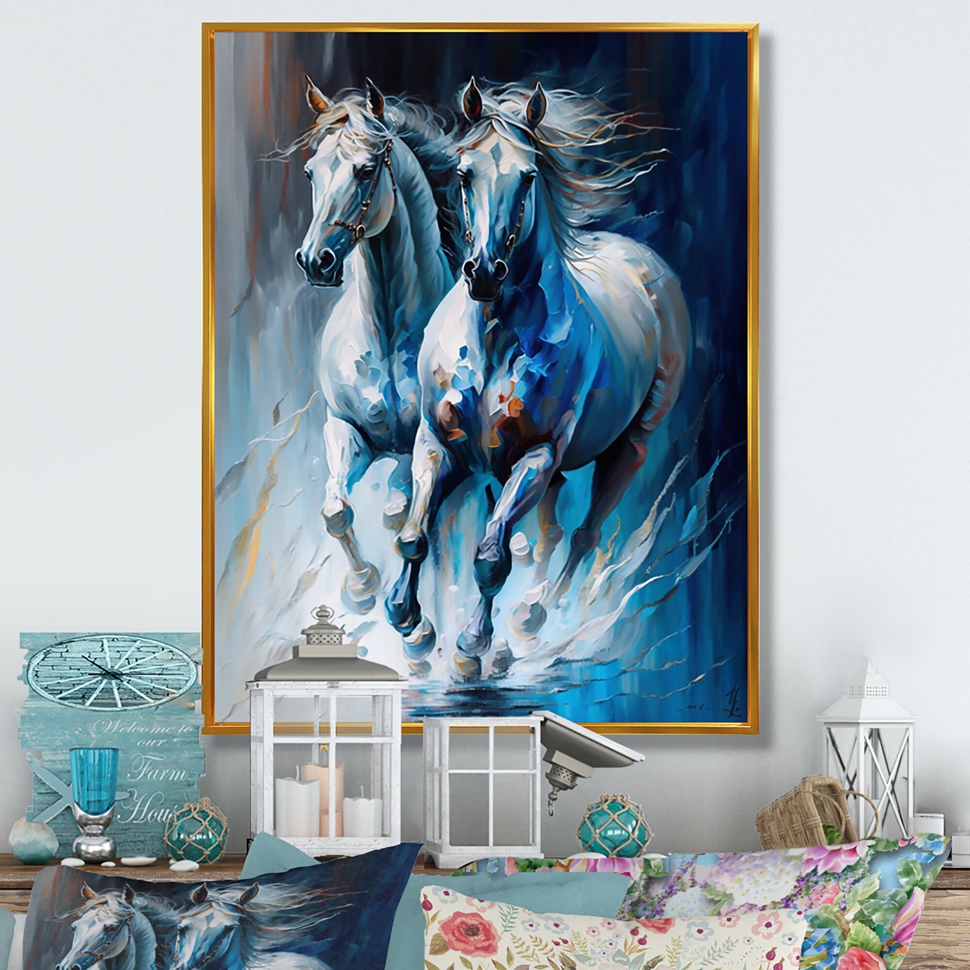 Designart "Two Horses Running II" Animals Framed Canvas Art Print