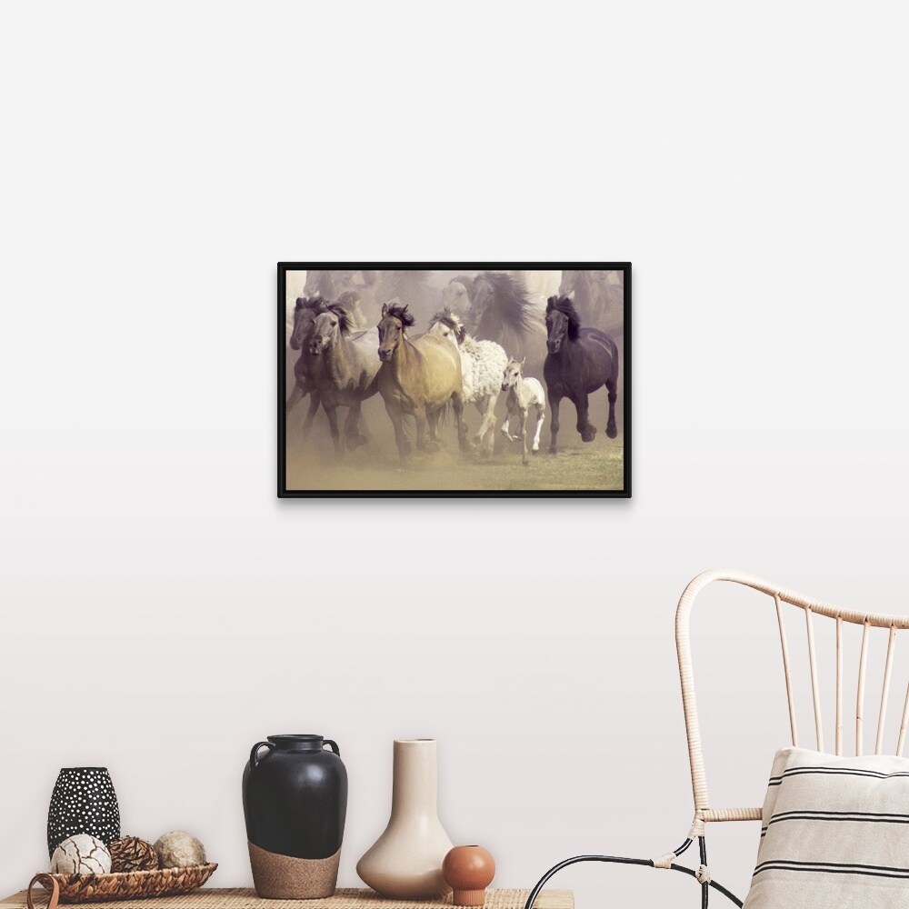Designart "Herd Of Horses Running III" Animals Framed Canvas Art Print