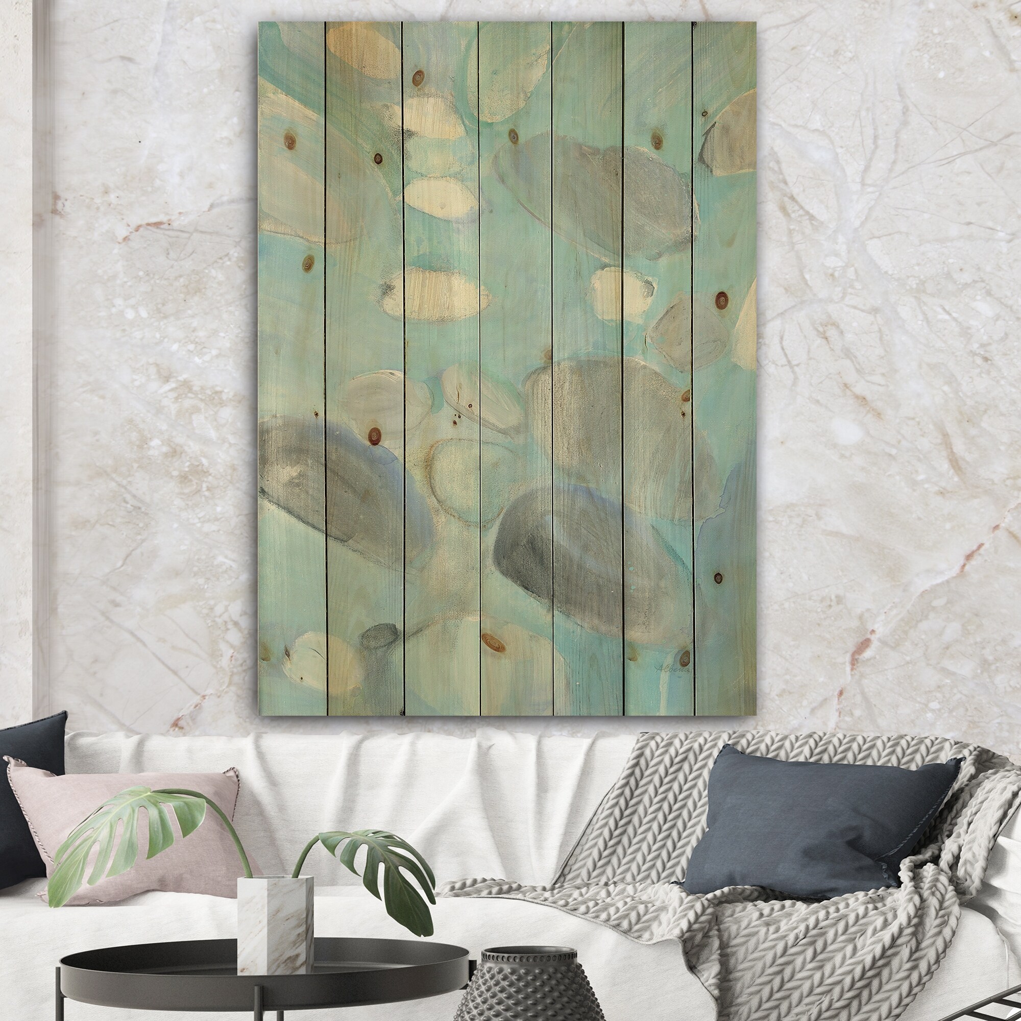 Designart 'Running Water II' Traditional Print on Natural Pine Wood - Blue