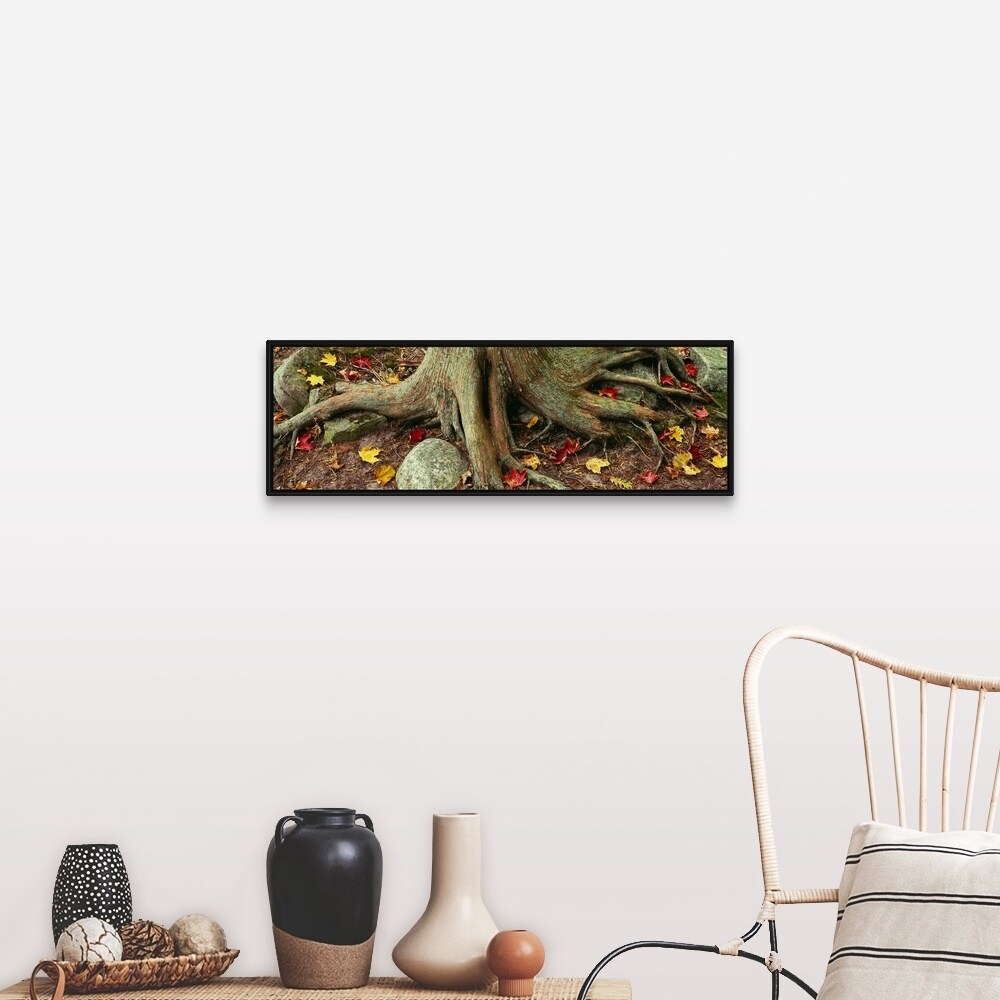 "Close-Up of Tree Roots, Sleeping Bear Dunes National Lakeshore, Michigan" Black Float Frame Canvas Art