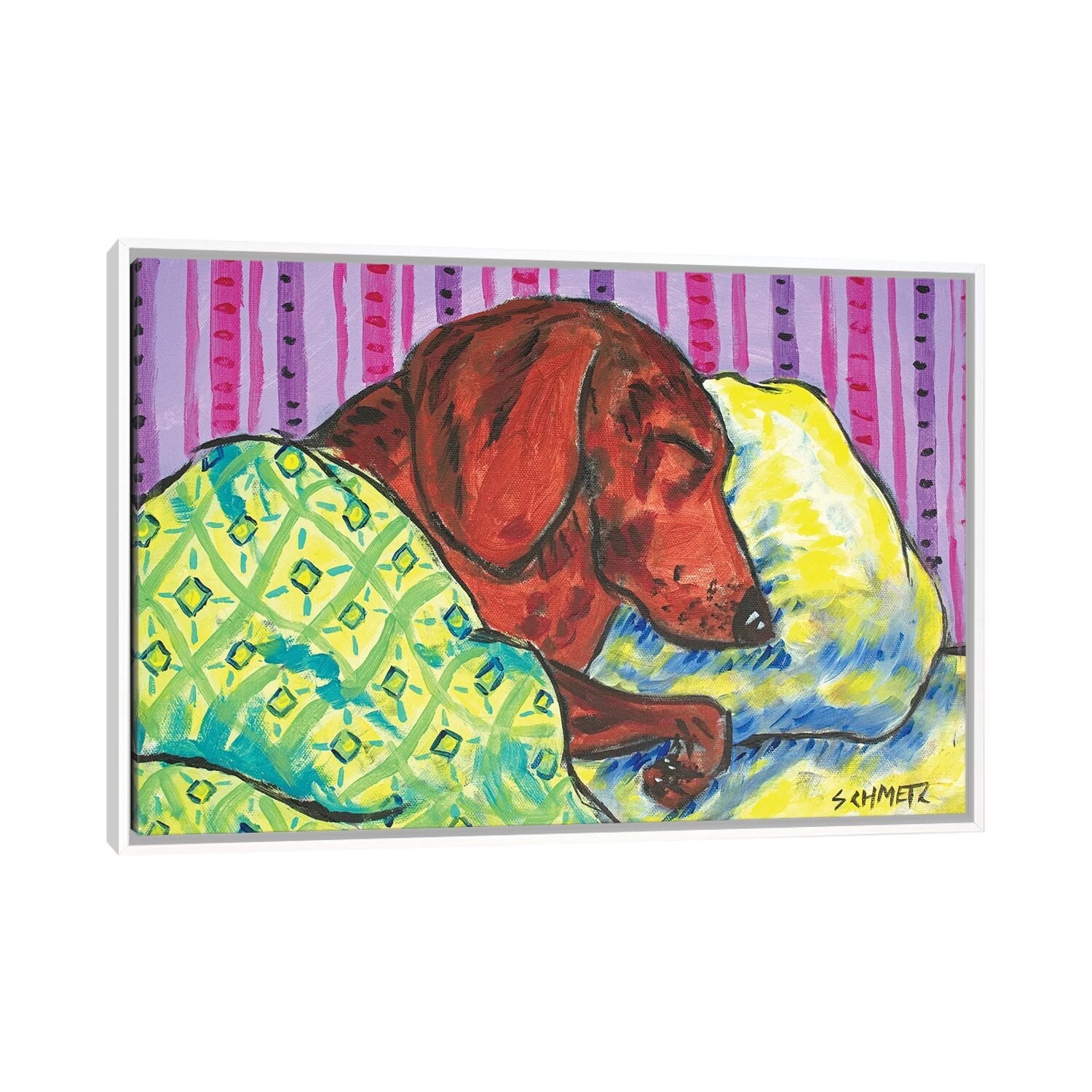 iCanvas "Dachshund Sleeping" by Jay Schmetz Framed