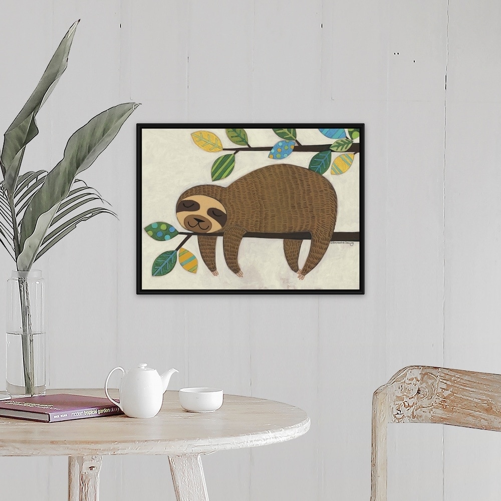 "Sleeping Sloth" Black Float Frame Canvas Art