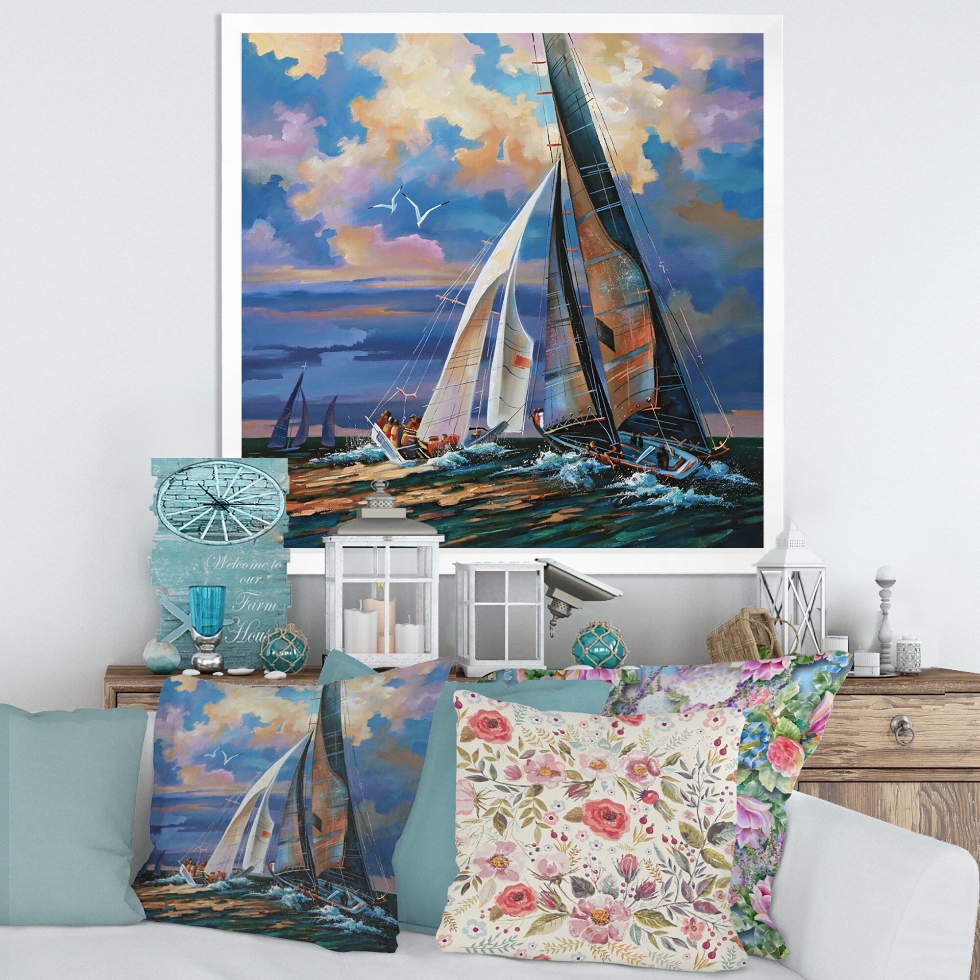Designart "Regatta Sailboats Arriving At the Finish I" Nautical & Coastal Framed Art Print