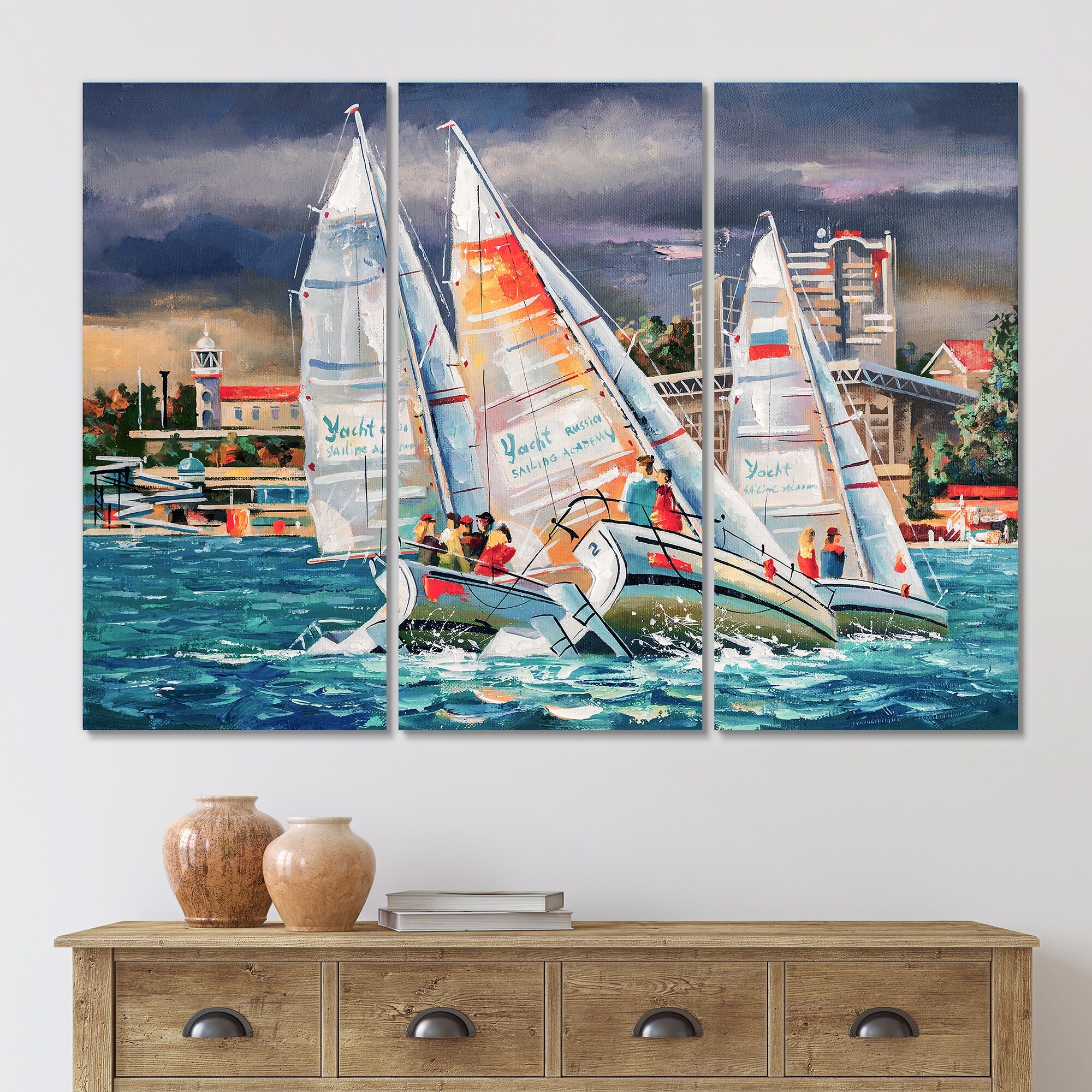 Designart "Regatta Sailboats Arriving At the Finish IV" Nautical & Coastal Canvas Wall Art Print