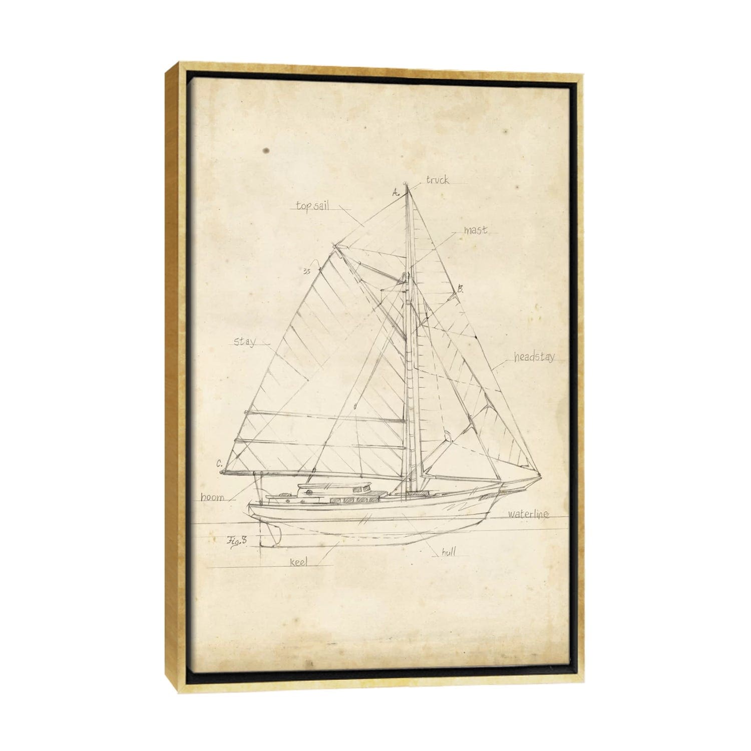 iCanvas "Sailboat Blueprint III" by Ethan Harper Framed