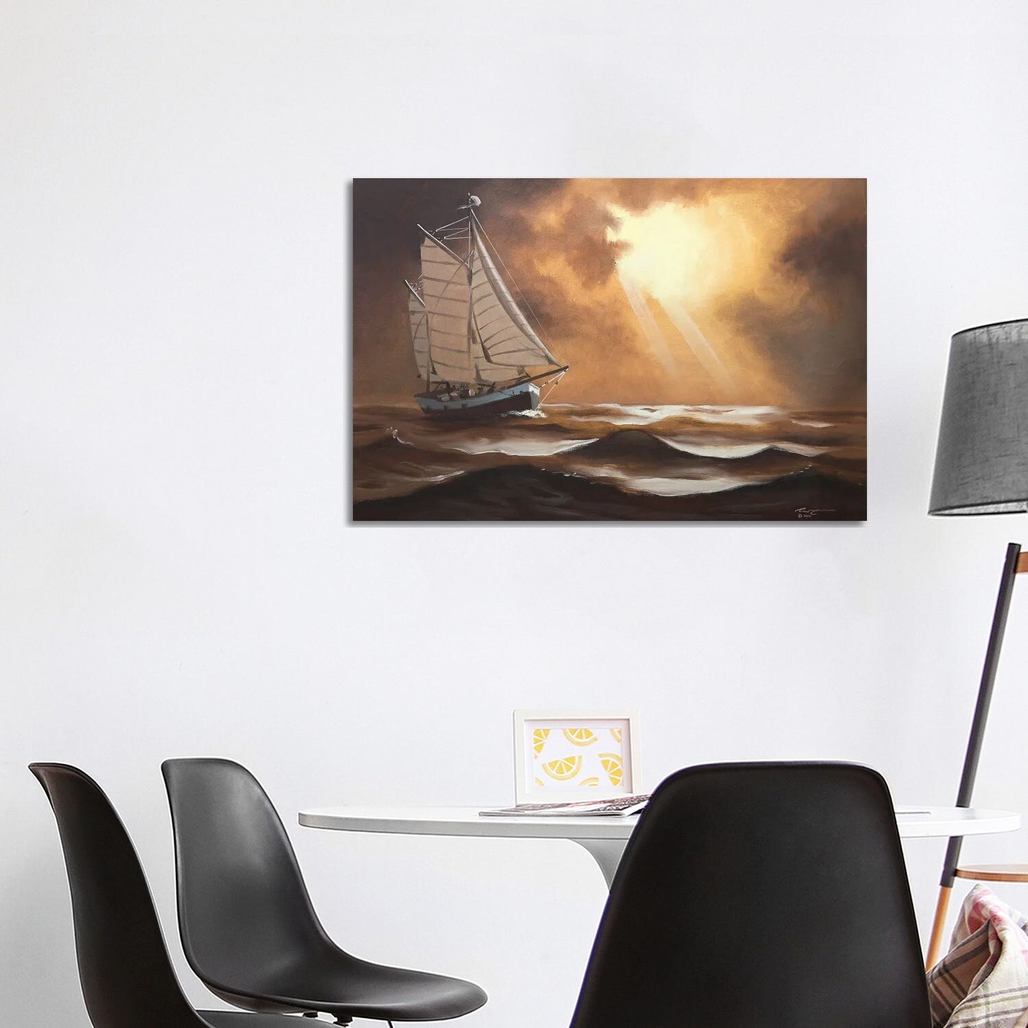 Designart "A Moody Seascape With A Sailboat With Sails" Nautical & Coastal Canvas Wall Art Print