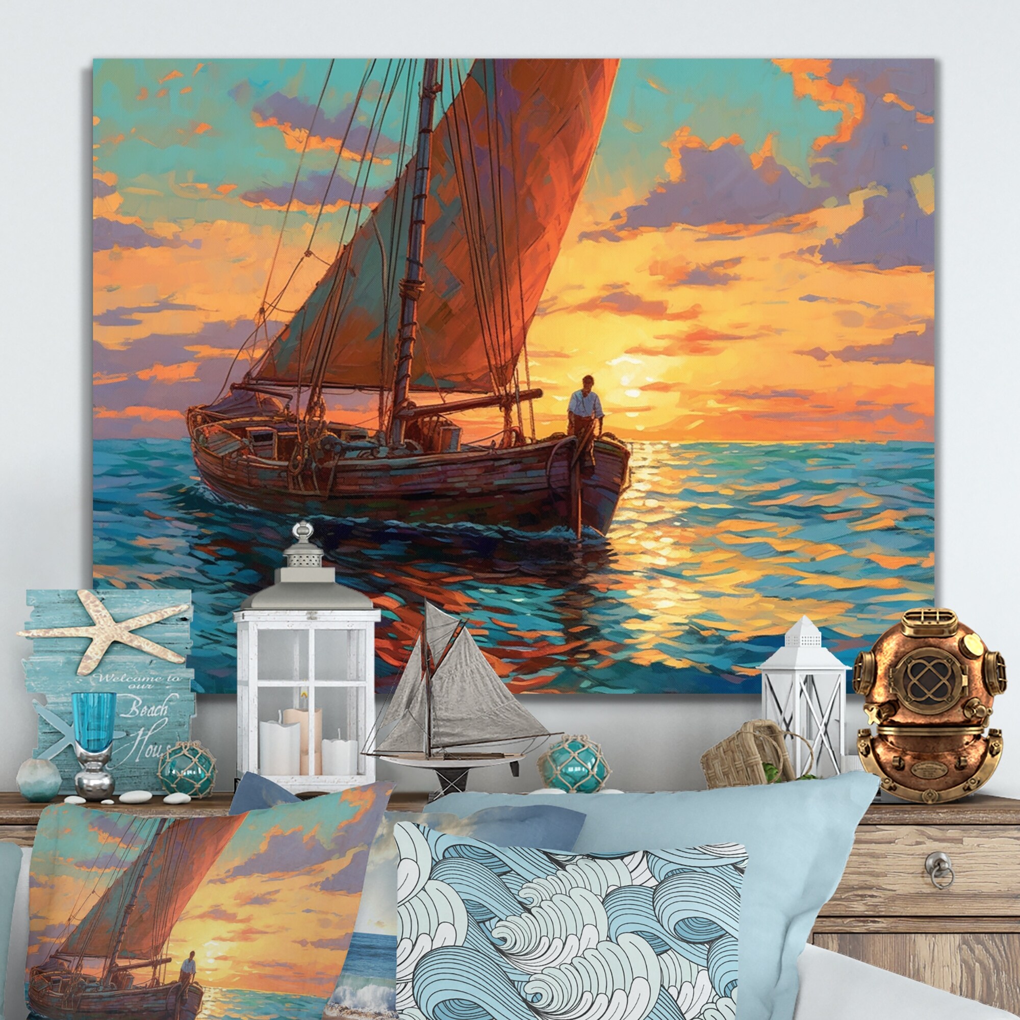 Designart "Sailboat At Sea V" Modern Landscape Beach Metal Wall Art