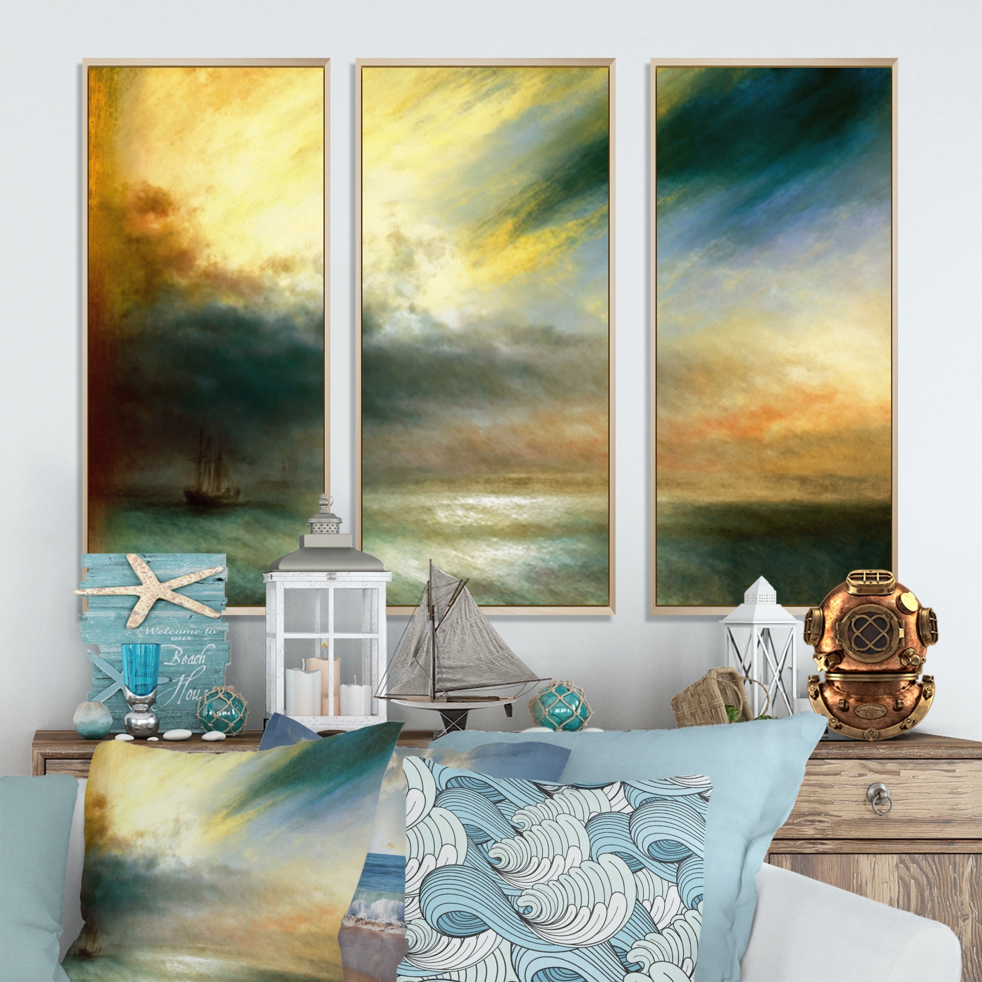 Designart "A Moody Seascape With A Sailboat With Sails" Nautical & Coastal Framed Wall Art Set of 3 - 4 Colors of Frames