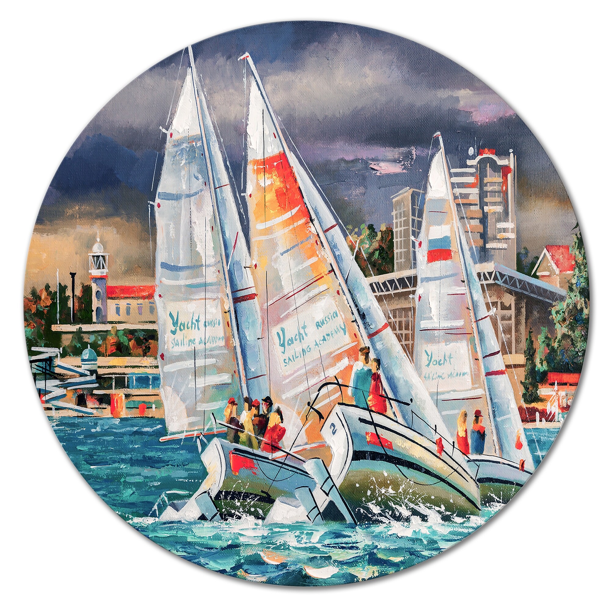 Designart 'Regatta Sailboats Arriving At the Finish IV' Nautical & Coastal Metal Circle Wall Art