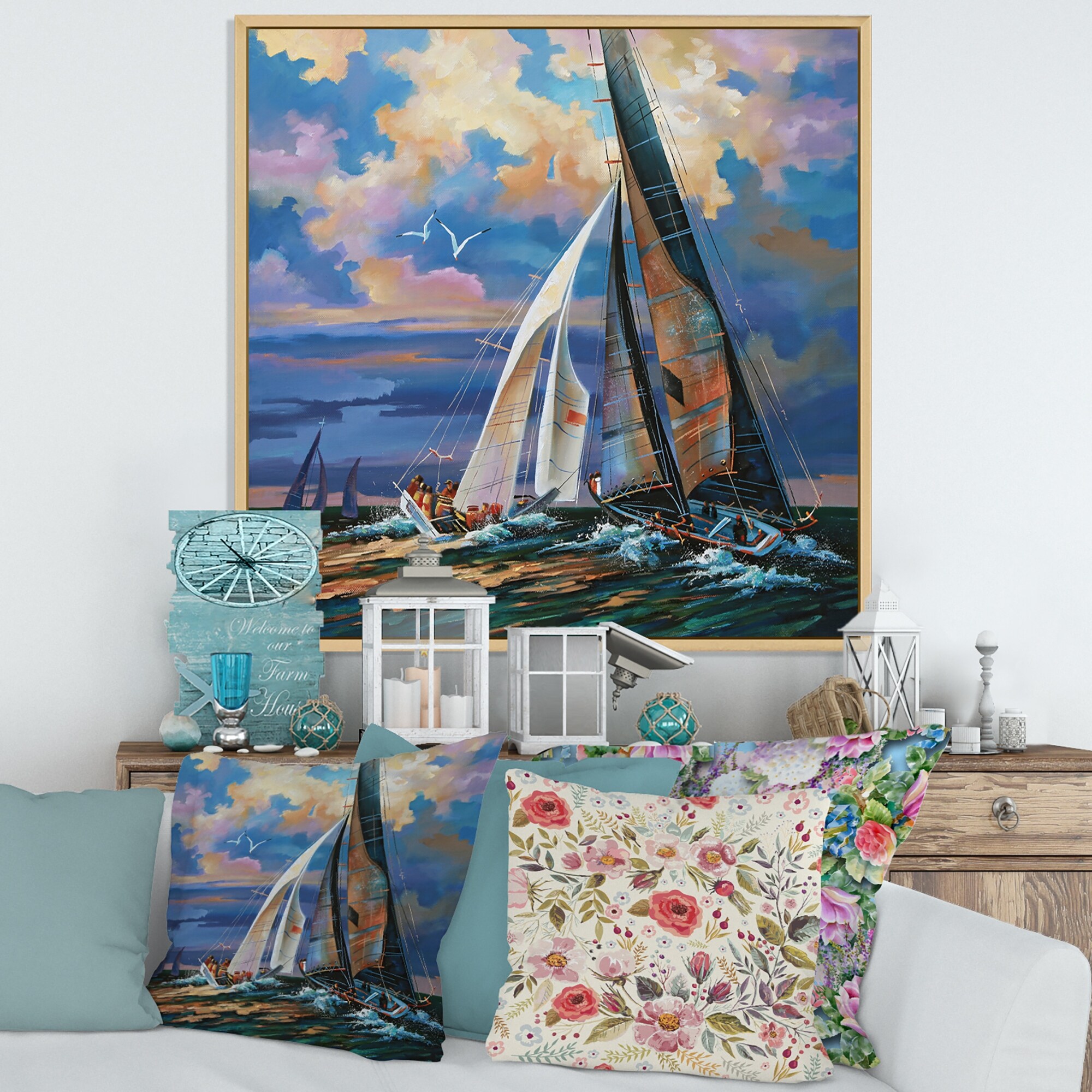 Designart "Regatta Sailboats Arriving At the Finish III" Nautical & Coastal Framed Canvas Wall Art Print