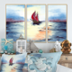 Designart "Sailboat Sailing in the Blue Sea" Sea & Shore Framed Art Set of 3 - 4 Colors of Frames