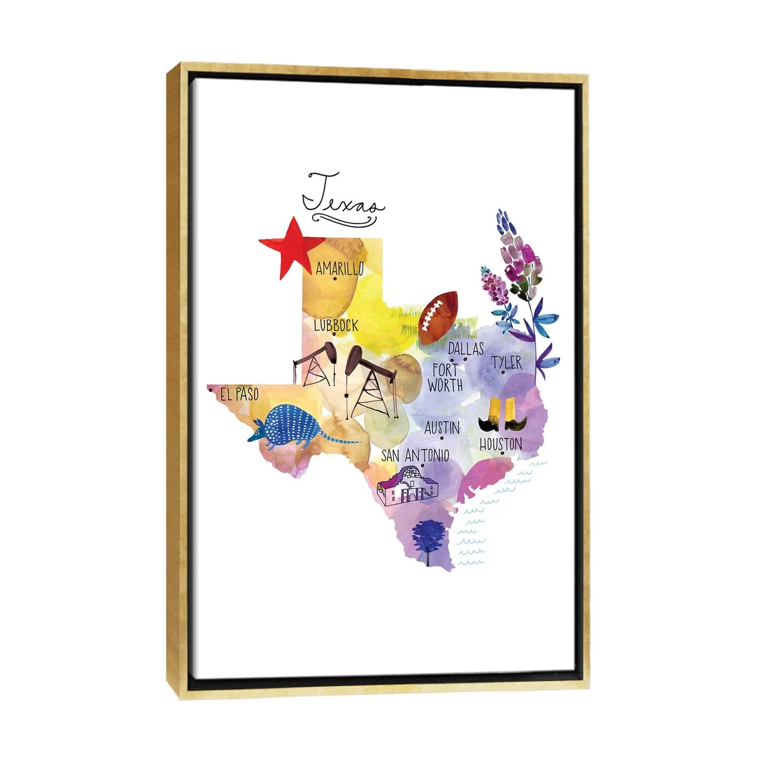 iCanvas "Map Of Texas" by Sara Franklin Framed Canvas Print
