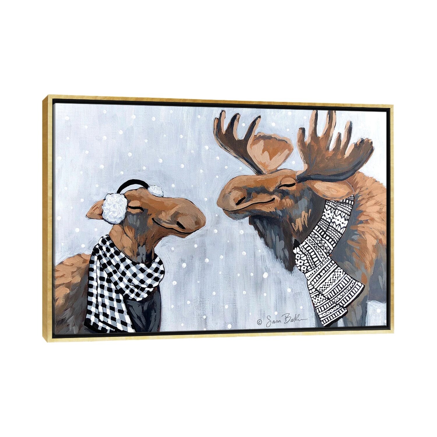 iCanvas "Winter Moose Kisses" by Sara Baker Framed Canvas Print