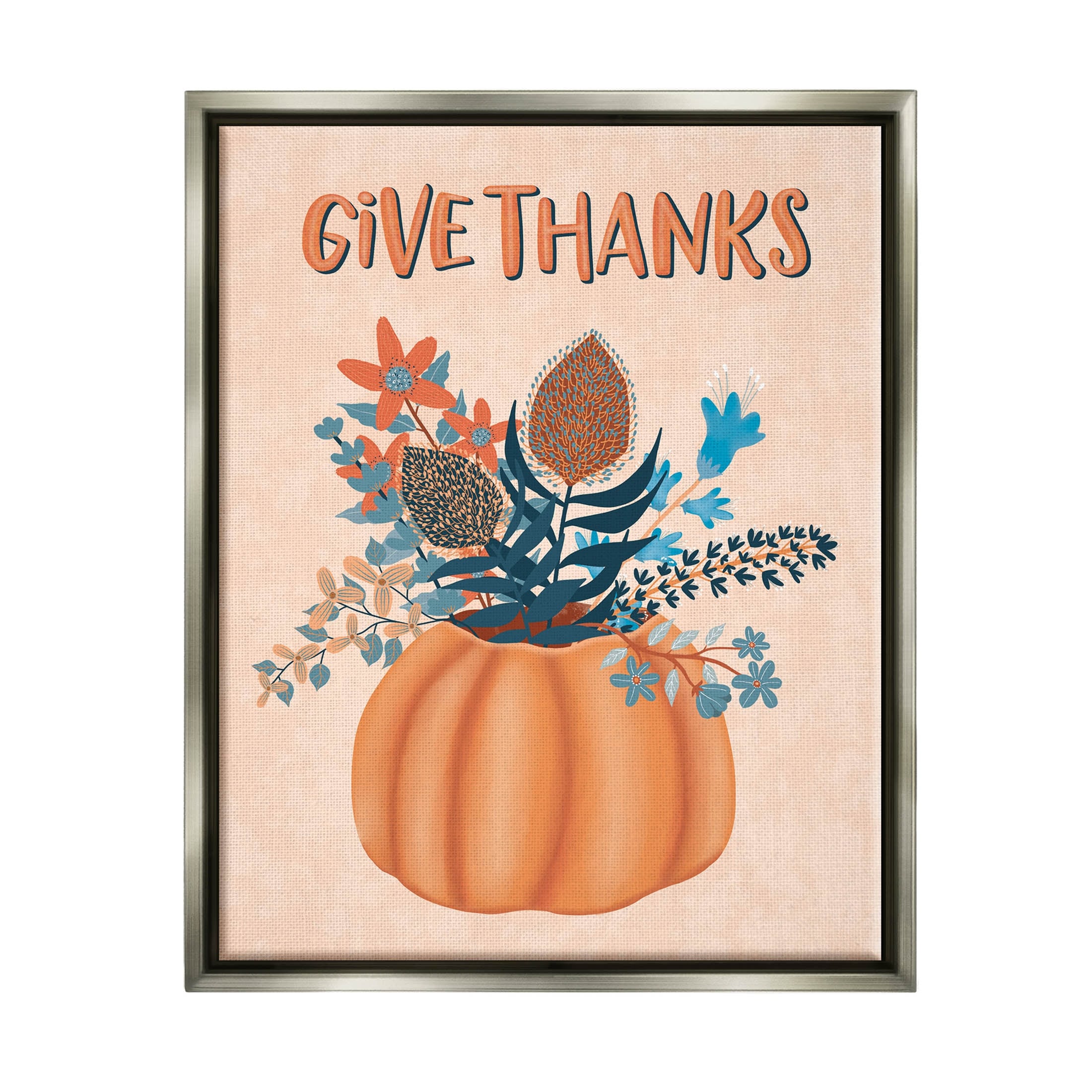 Stupell Industries Give Thanks Fall Botanical Blooms Floater Canvas Wall Art by Darlene Seale