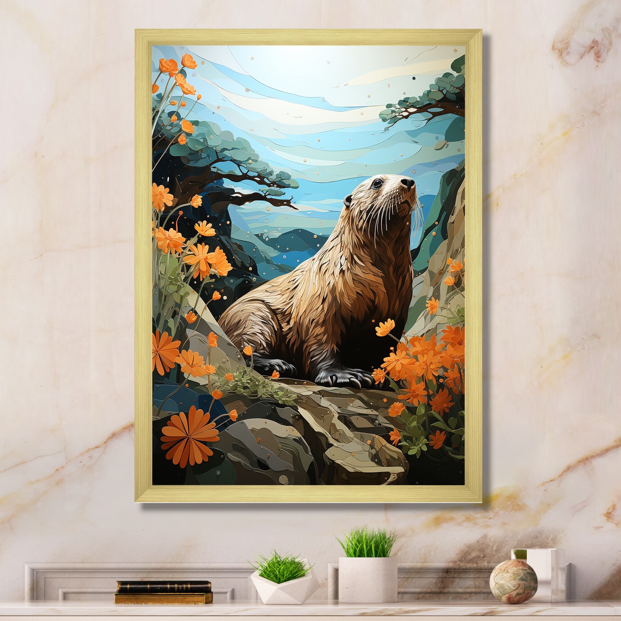 Designart "Curious Sea Lion I" Seal/Sea Lion Framed Canvas Prints