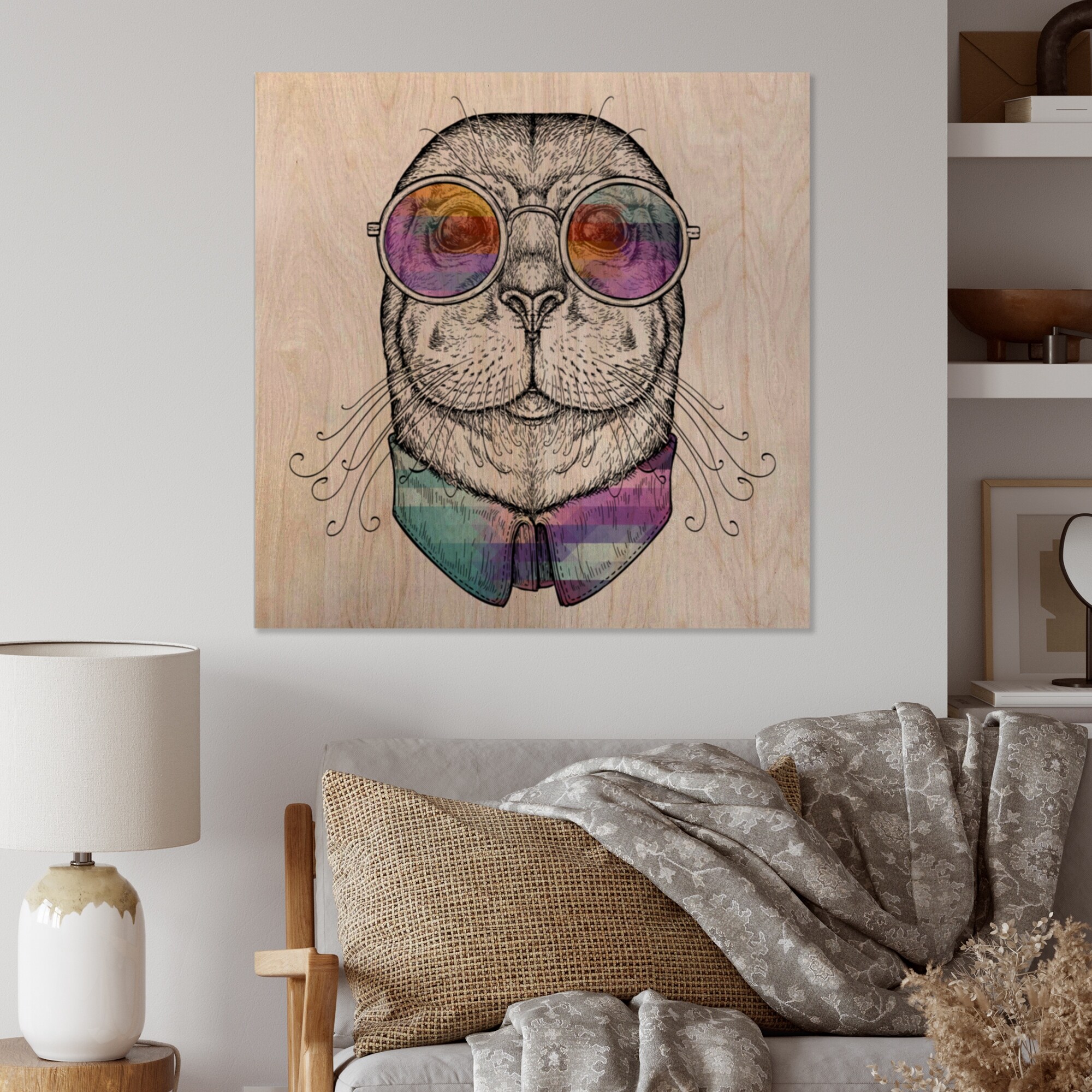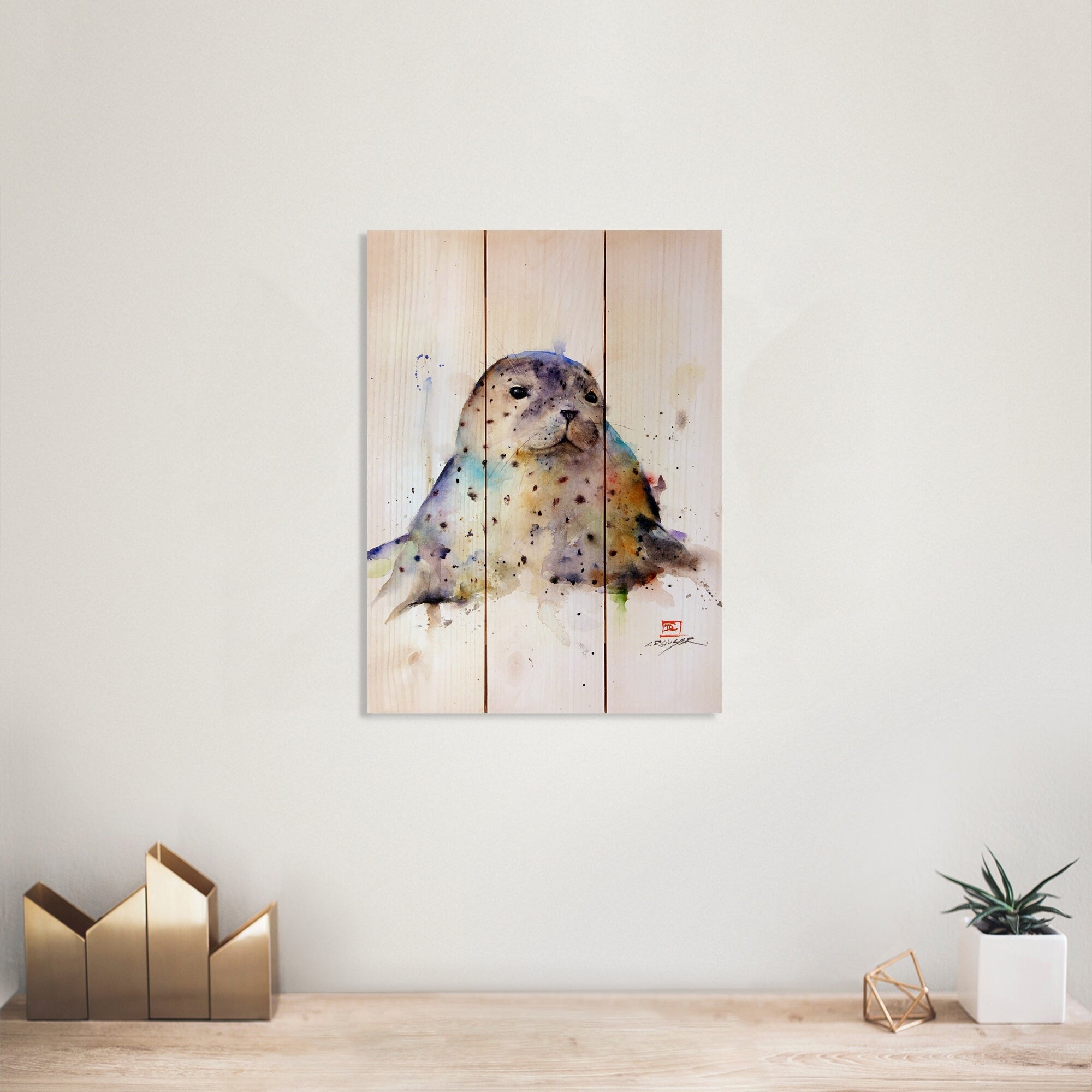 Designart 'Colorful Portrait Funny Seal' Children's Art Wood Wall Art Panels - Natural Pine Wood