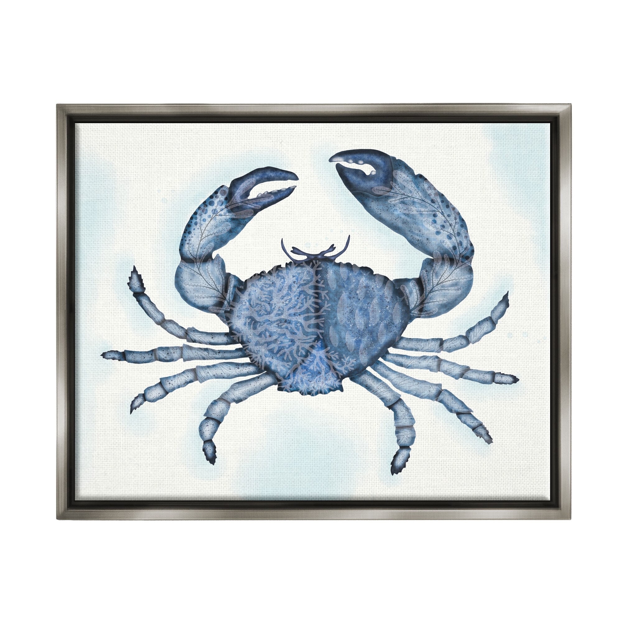 Stupell Industries Blue Crab Claws Sea Life Botanical Pattern Floater Frame, Design by Darlene Seale