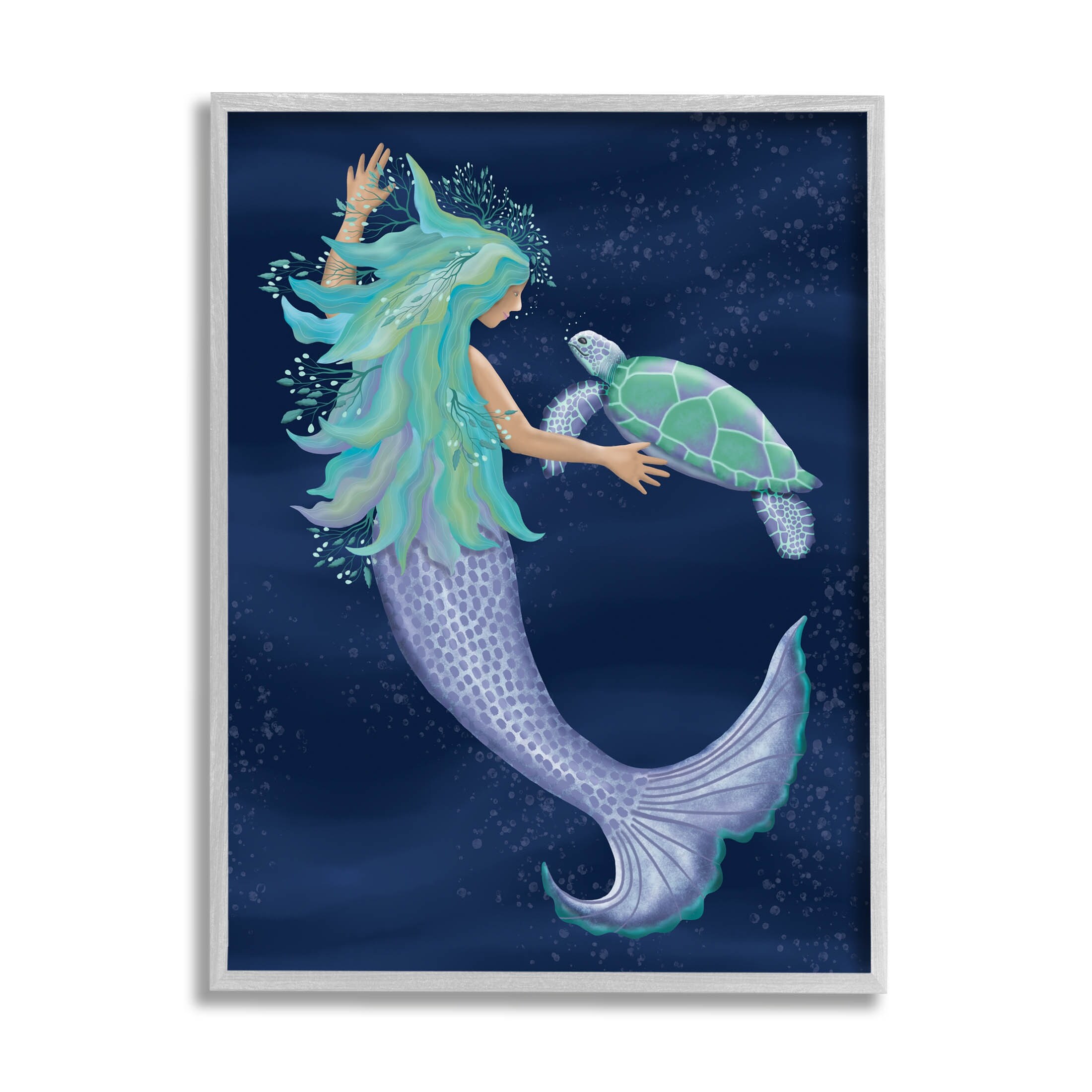 Stupell Nautical Mermaid Swimming Tortoise Framed Giclee Art by Darlene Seale