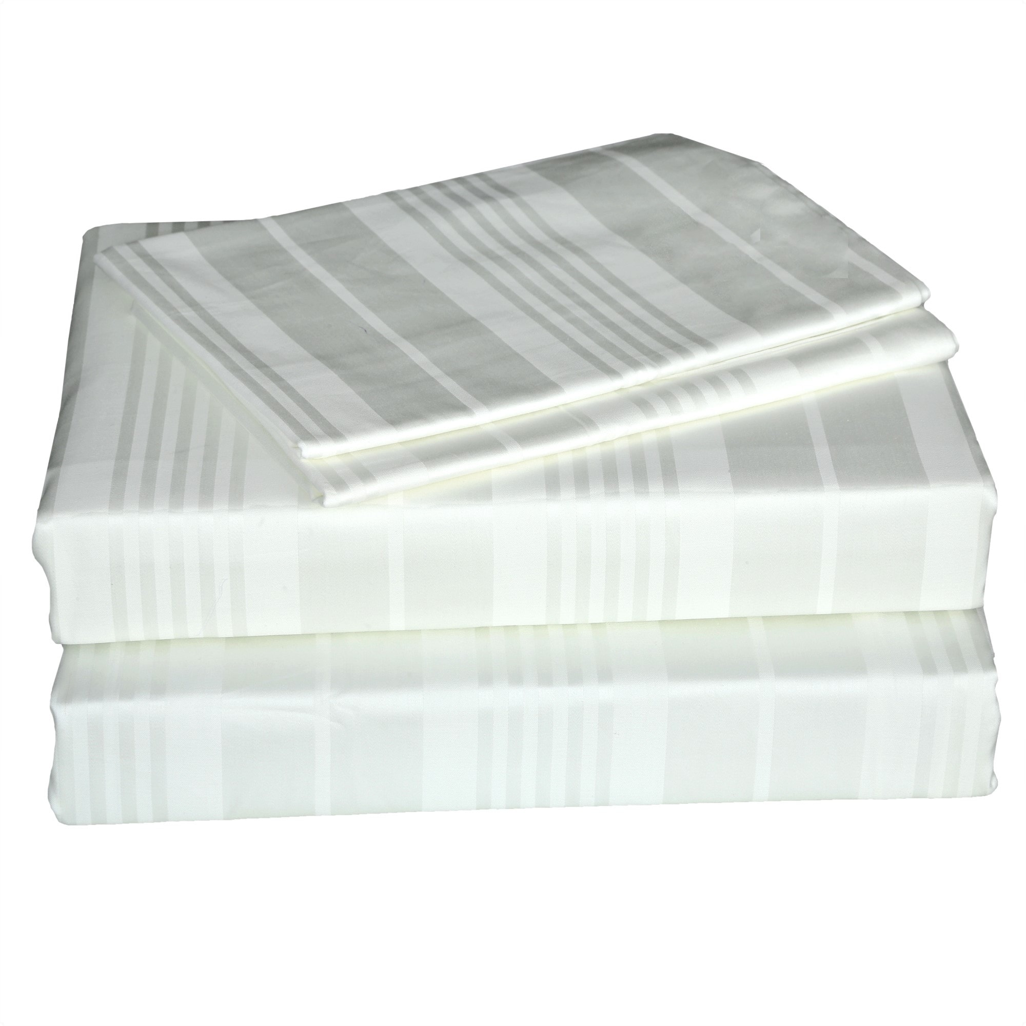 300 TC Eqyptian Quality Cotton Sateen Self Striped Solid Sheet Set